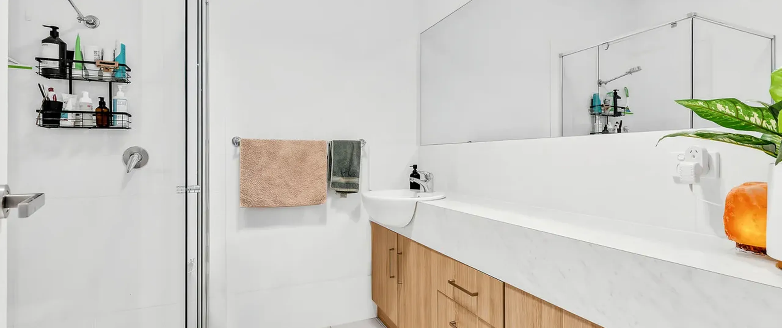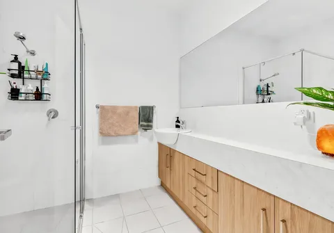 - Main bathroom complete with shower and toilet and large vanity with built in draws and cupboard storage