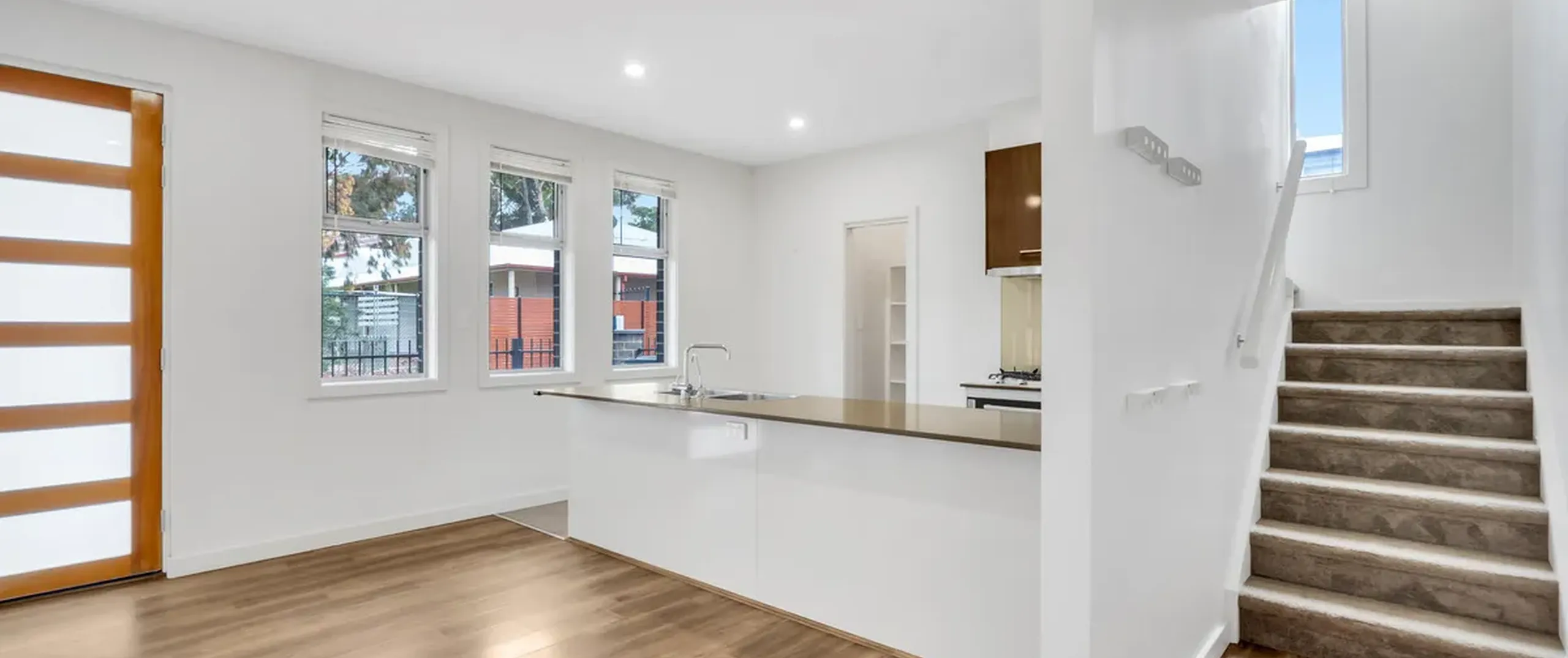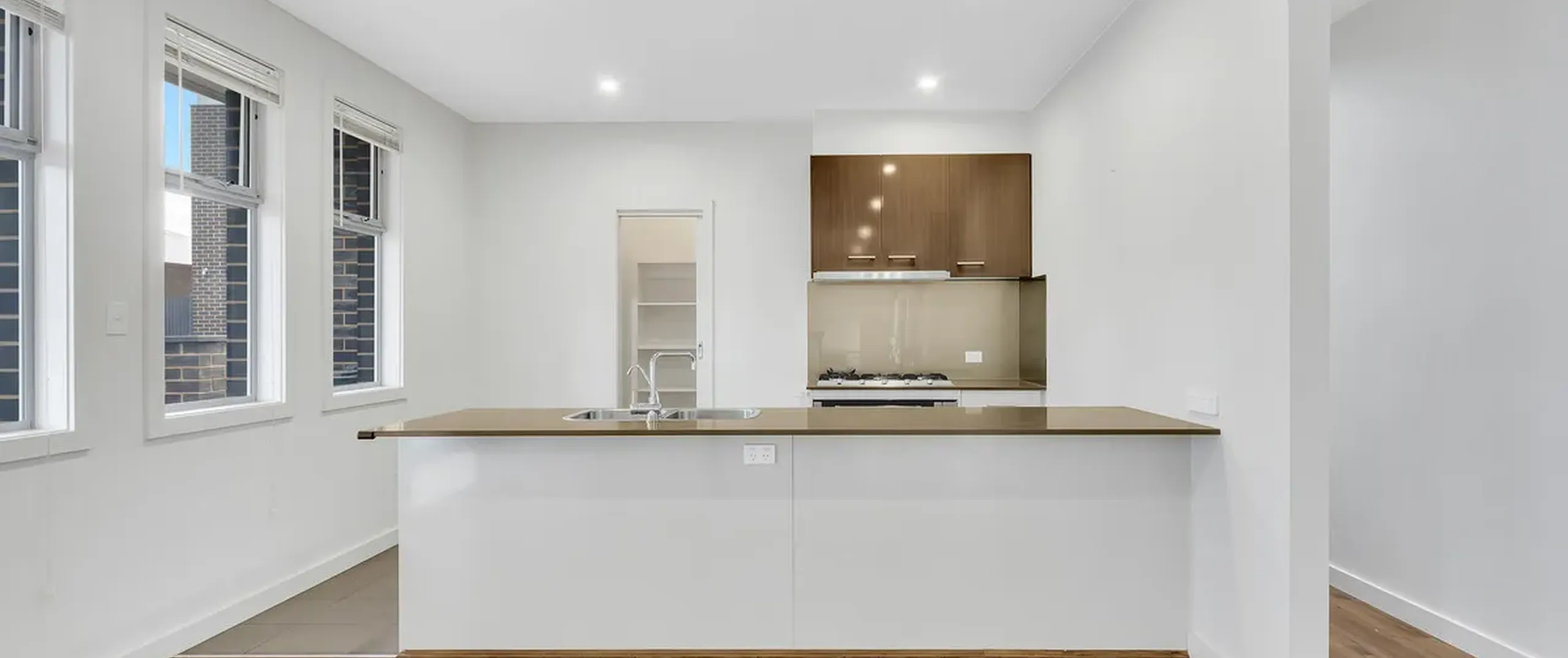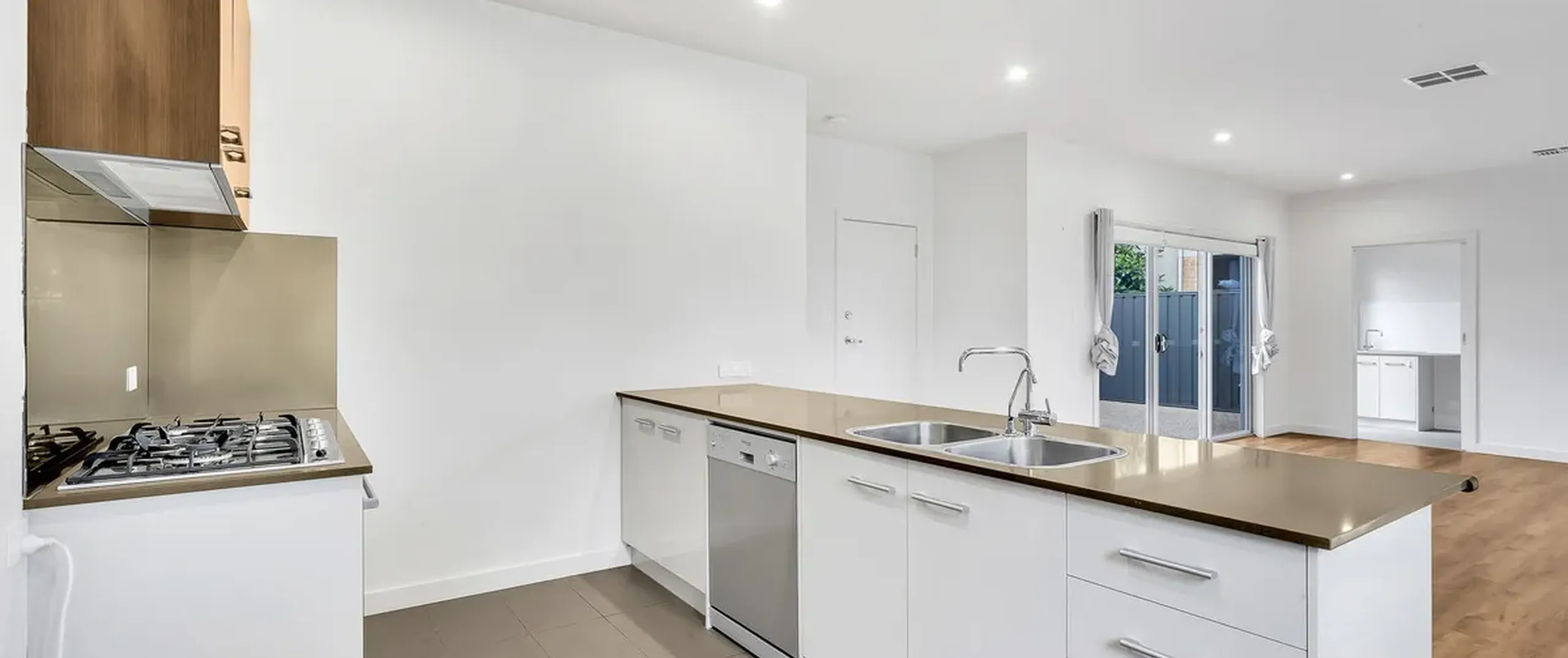 - Sleek on-trend kitchen with stainless steel dishwasher, oven and gas cooktop, ample cupboard, bench space and walk in pantry