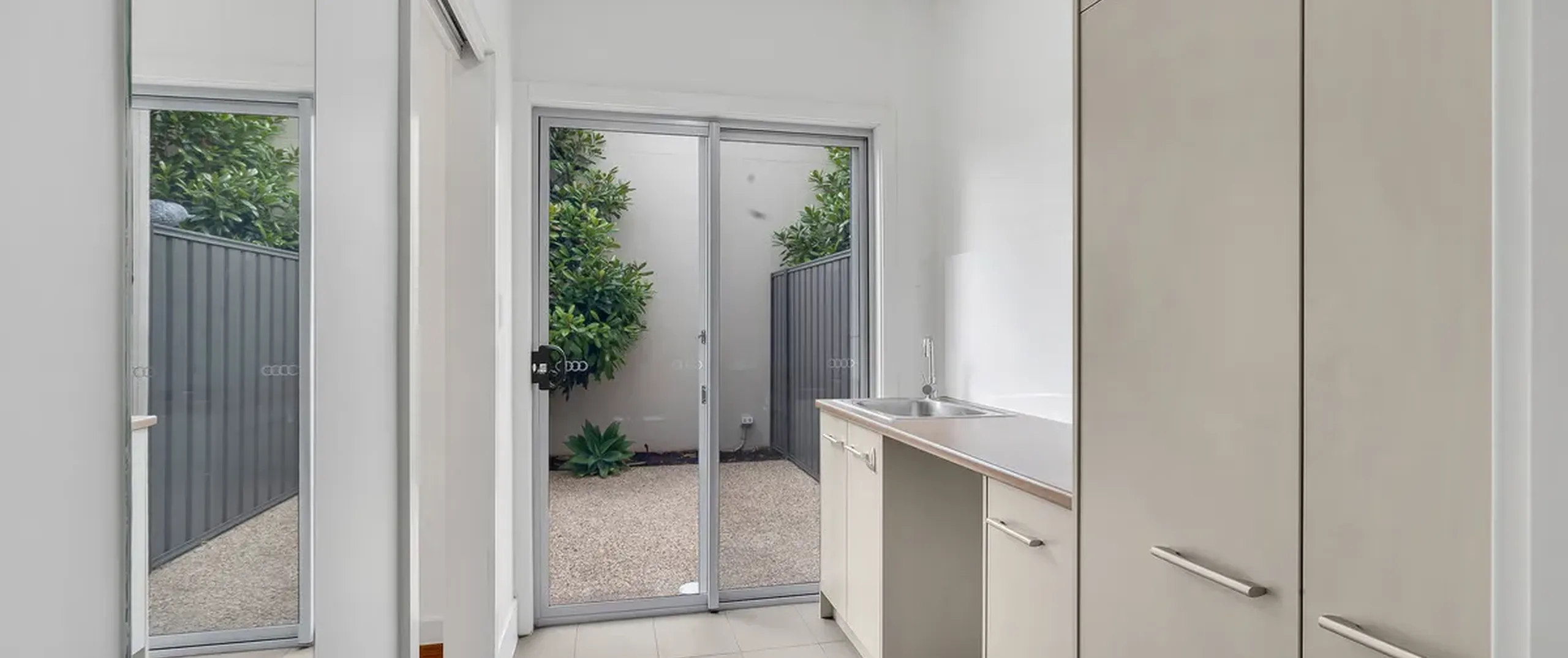 - Practical laundry with ample storage and external access
