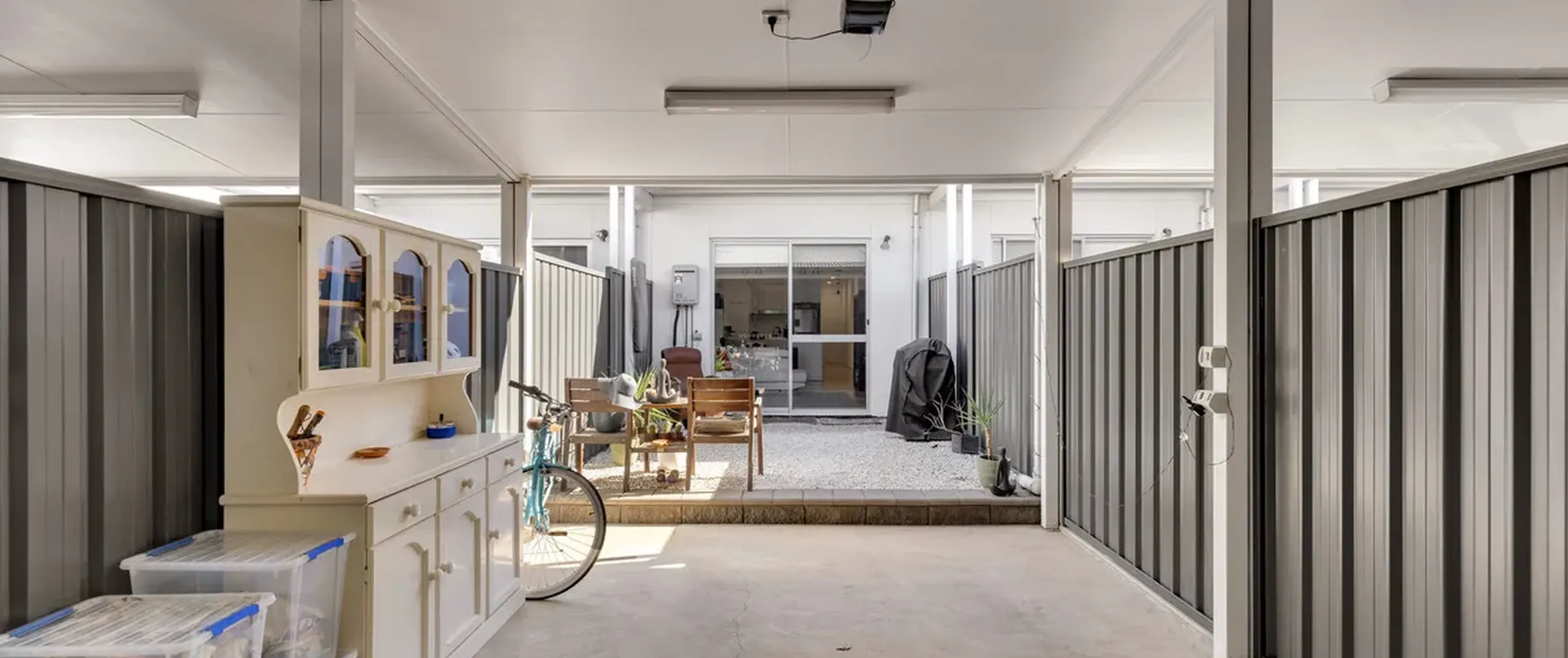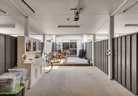 - Single carport with automatic panel lift door via rear access