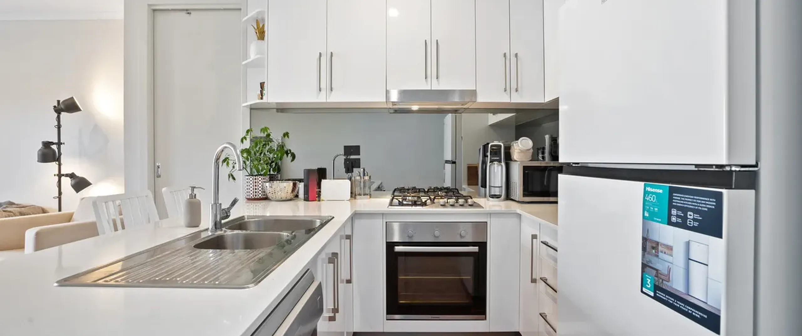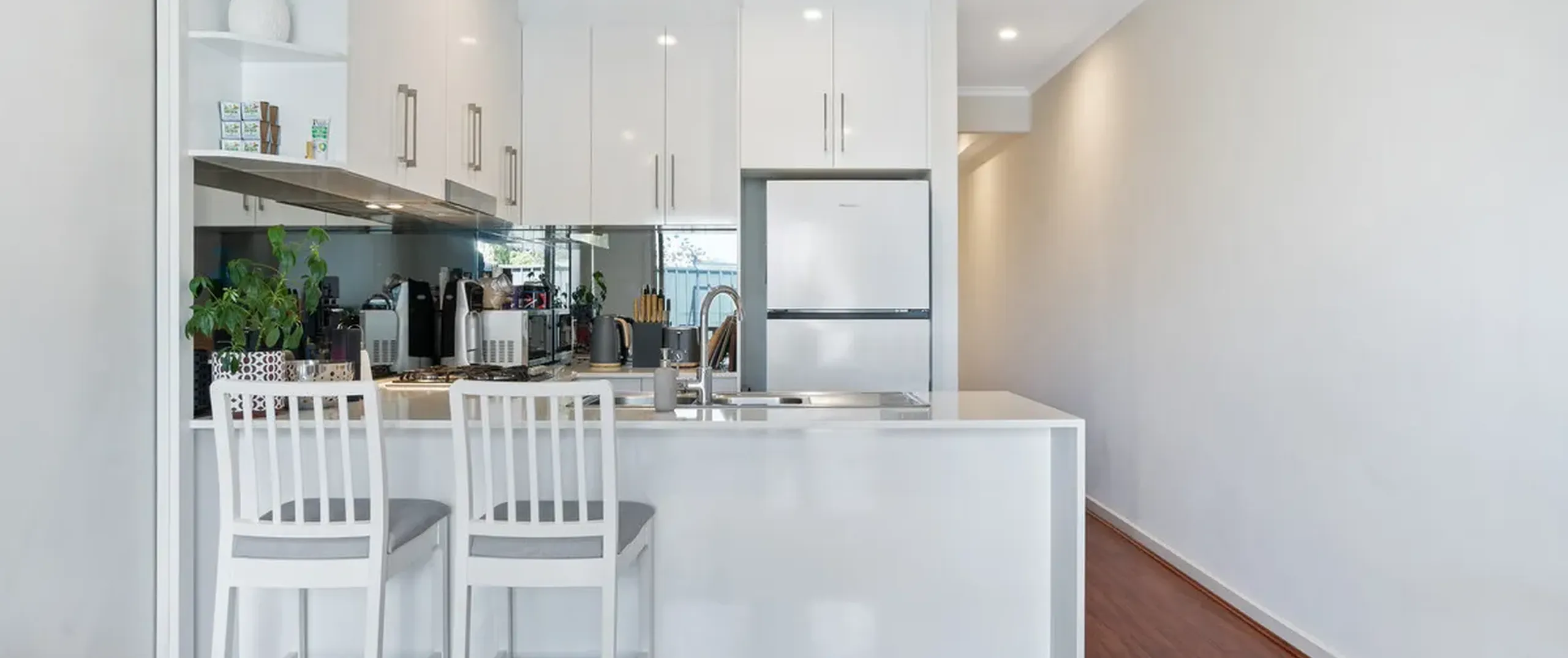 - Stylish kitchen featuring breakfast bar, stainless steel appliances and ample cupboard and bench space