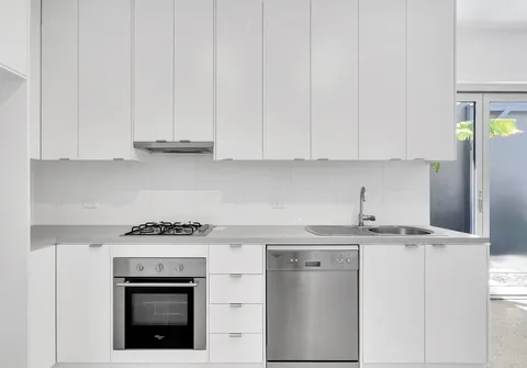 - Contemporary bright kitchen with stainless steel appliances including oven, gas cooktop, dishwasher and ample cupboard space