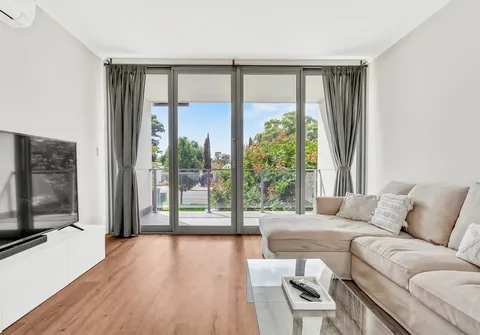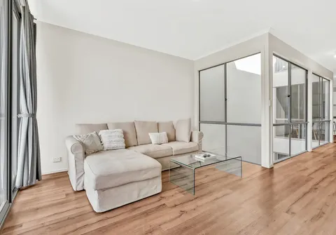 - Separate light-filled living area with glass sliding doors opening to private balcony
