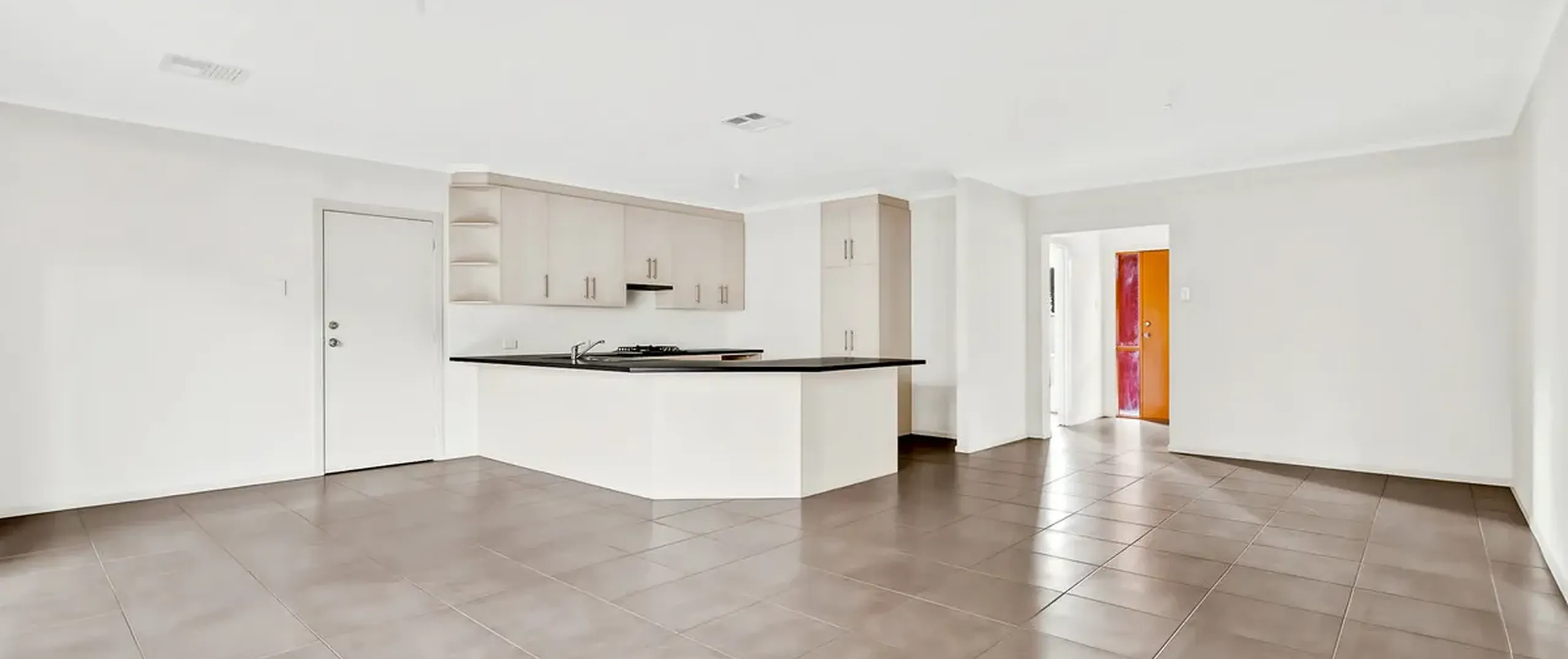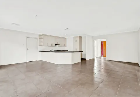 - Expansive open-plan living area with stylish tiled flooring, seamlessly combining kitchen, dining, and lounge spaces