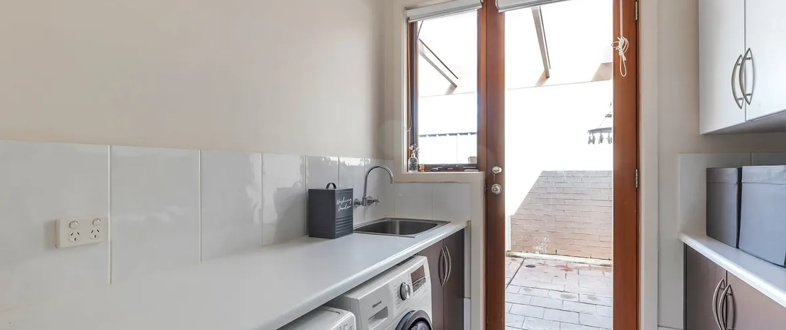 - Generous laundry with ample cupboard space and covered area adjacent clothesline