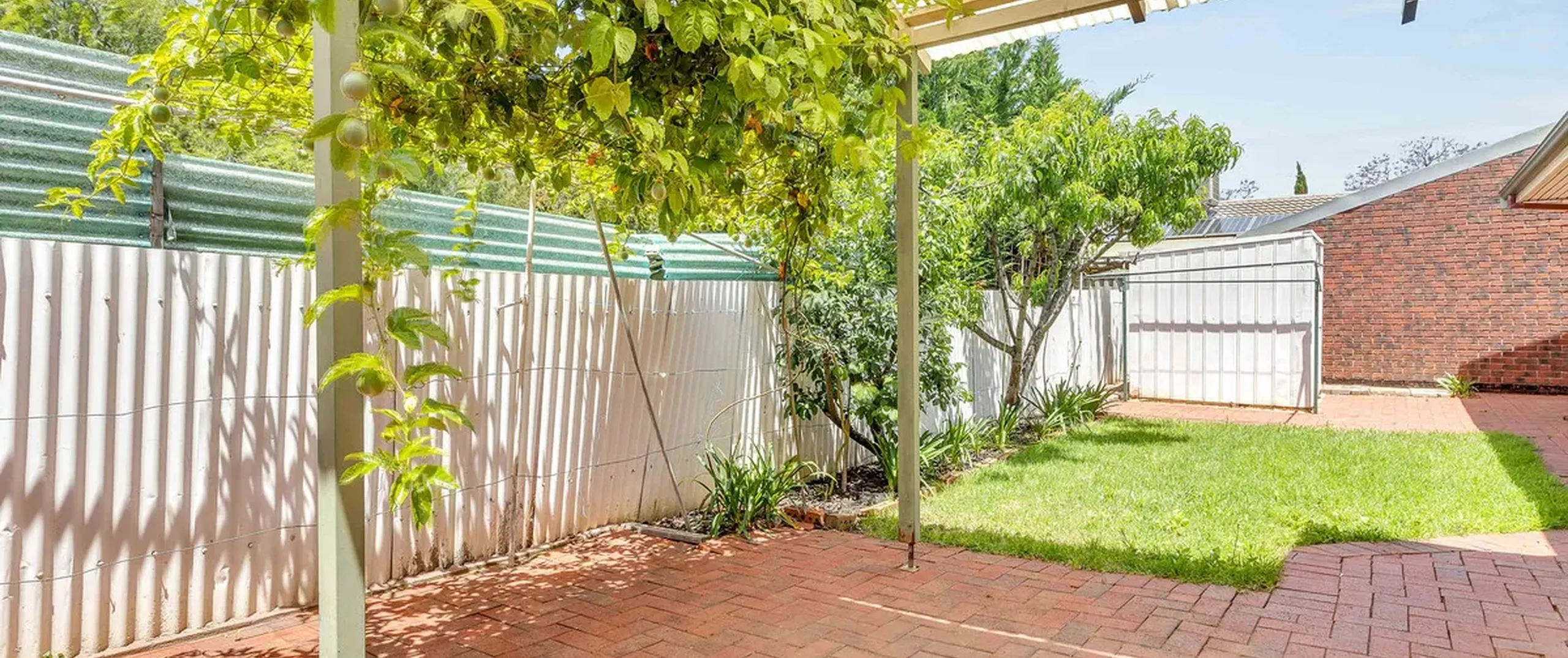 - Lovely low maintenance established gardens with fruit trees in the rear yard