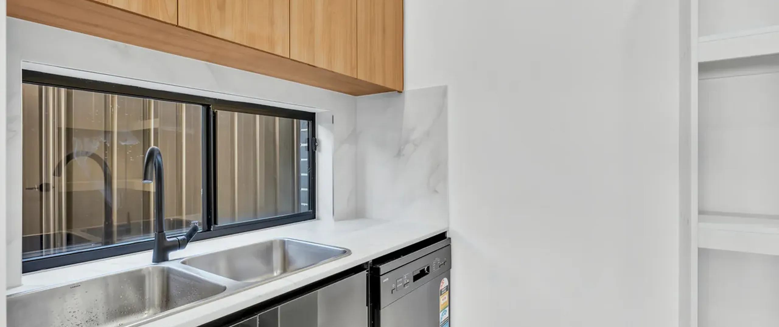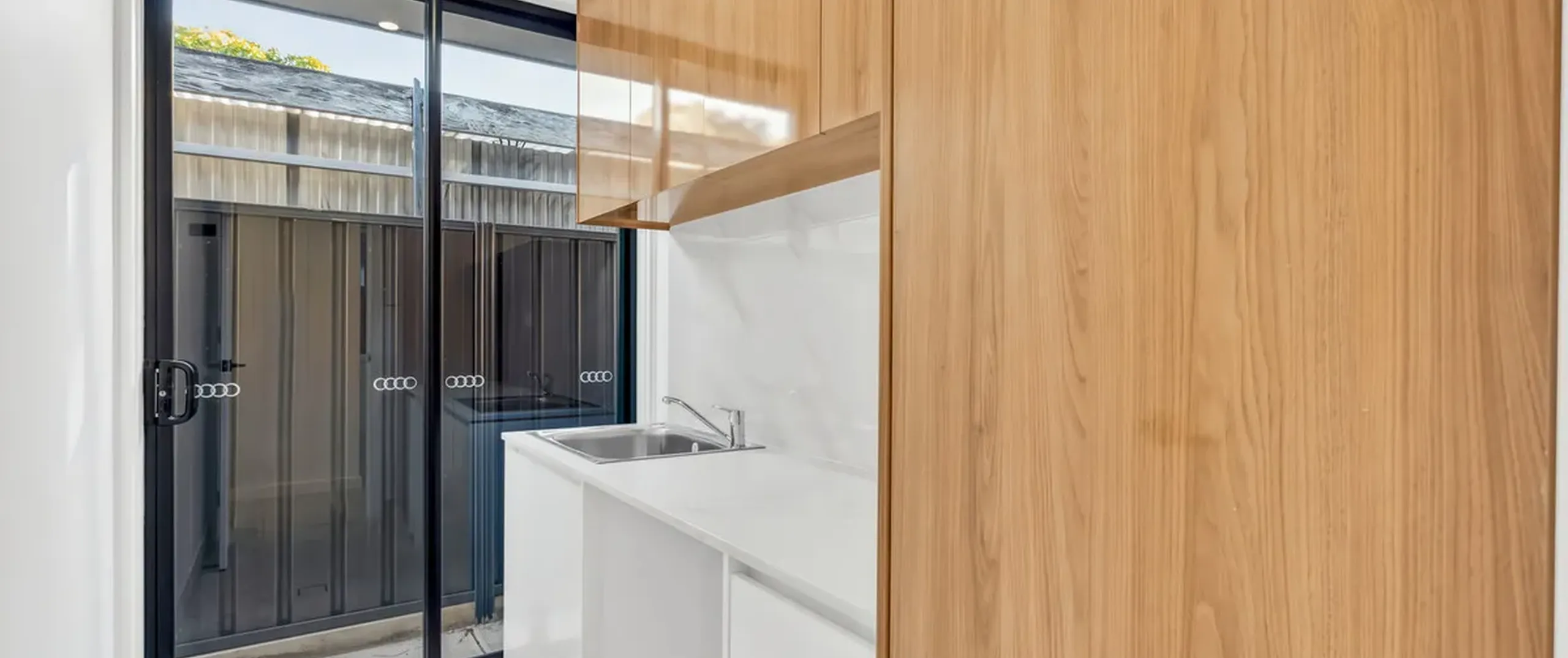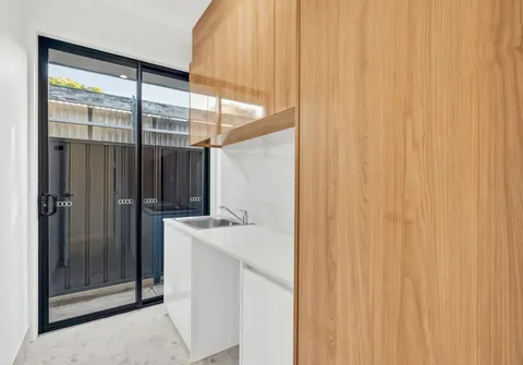 - Modern laundry with stone bench tops and plenty of storage and external entry to rear yard