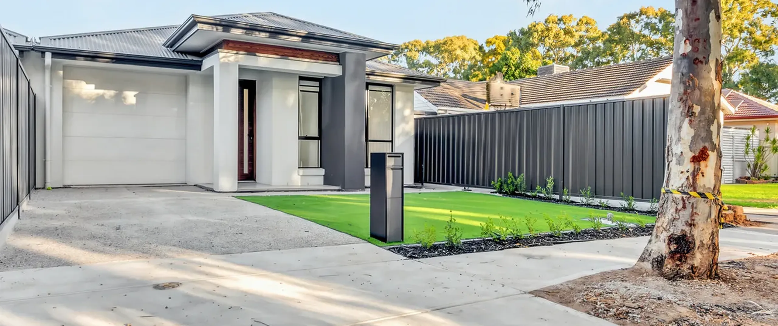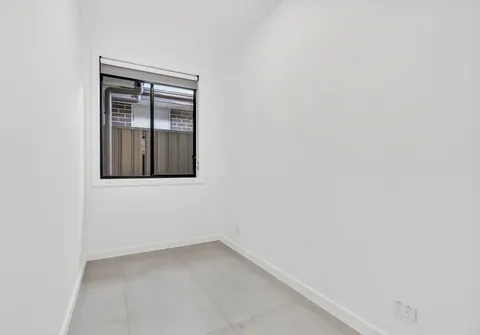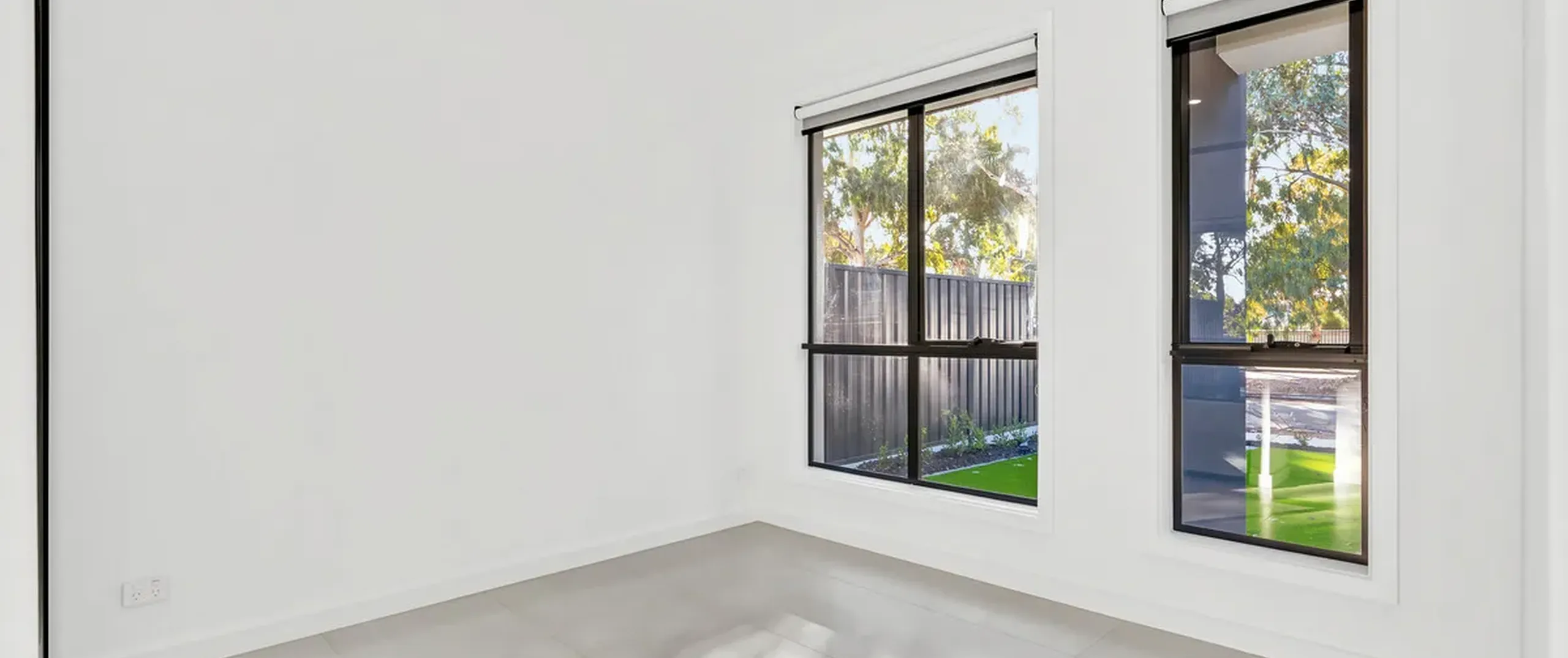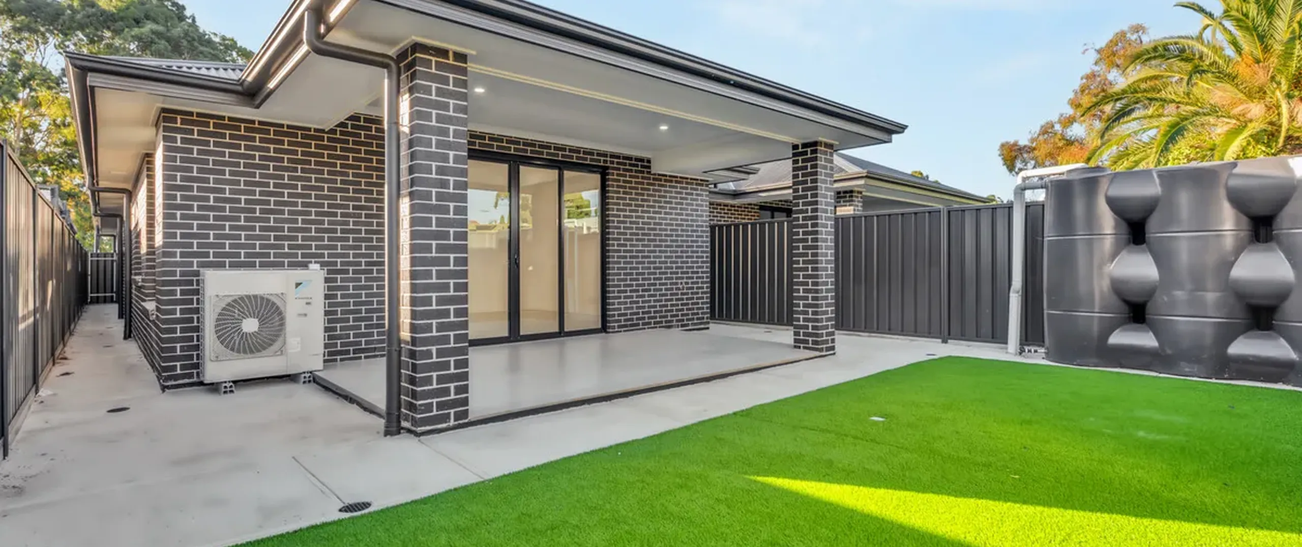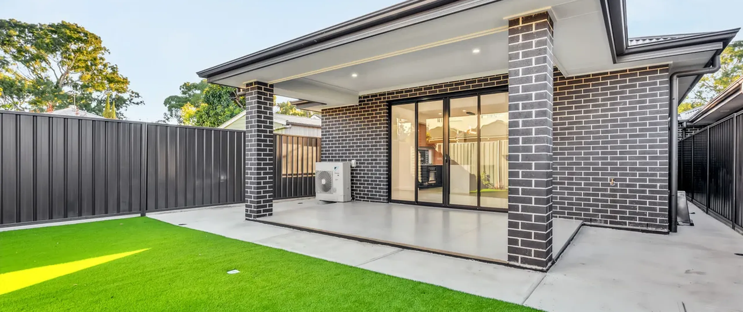 - Fully fenced rear yard with artificial turf and small garden bed