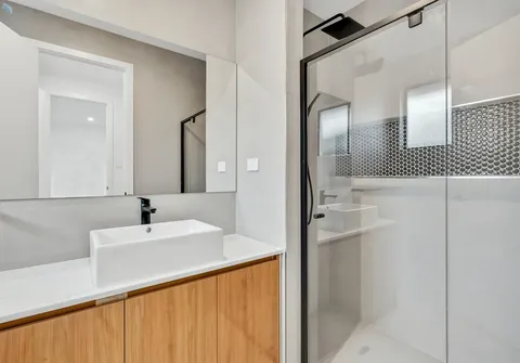 - Master bedroom with walk in robe and ensuite with modern vanity with stone benchtop