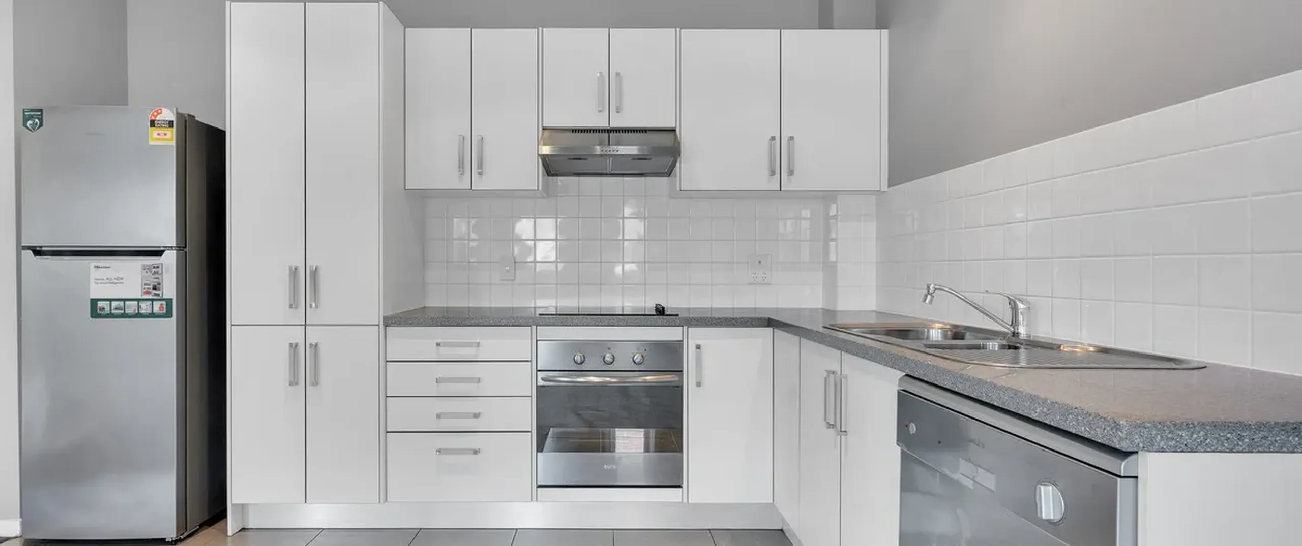- Modern kitchen equipped with quality stainless steel appliances, including a sleek dishwasher, plenty of built in cupboards for all your storage needs