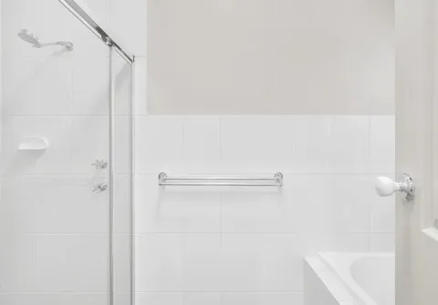 - 3-way main bathroom with large vanity for extra storage, separate bathtub and shower with additional linen storage