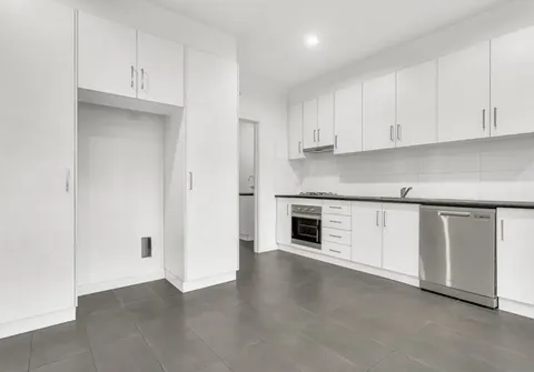 - Modern kitchen with gas cooktop, oven, dishwasher and ample cupboard and bench space