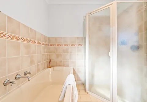 - Neat and tidy bathroom with bath tub and separate shower