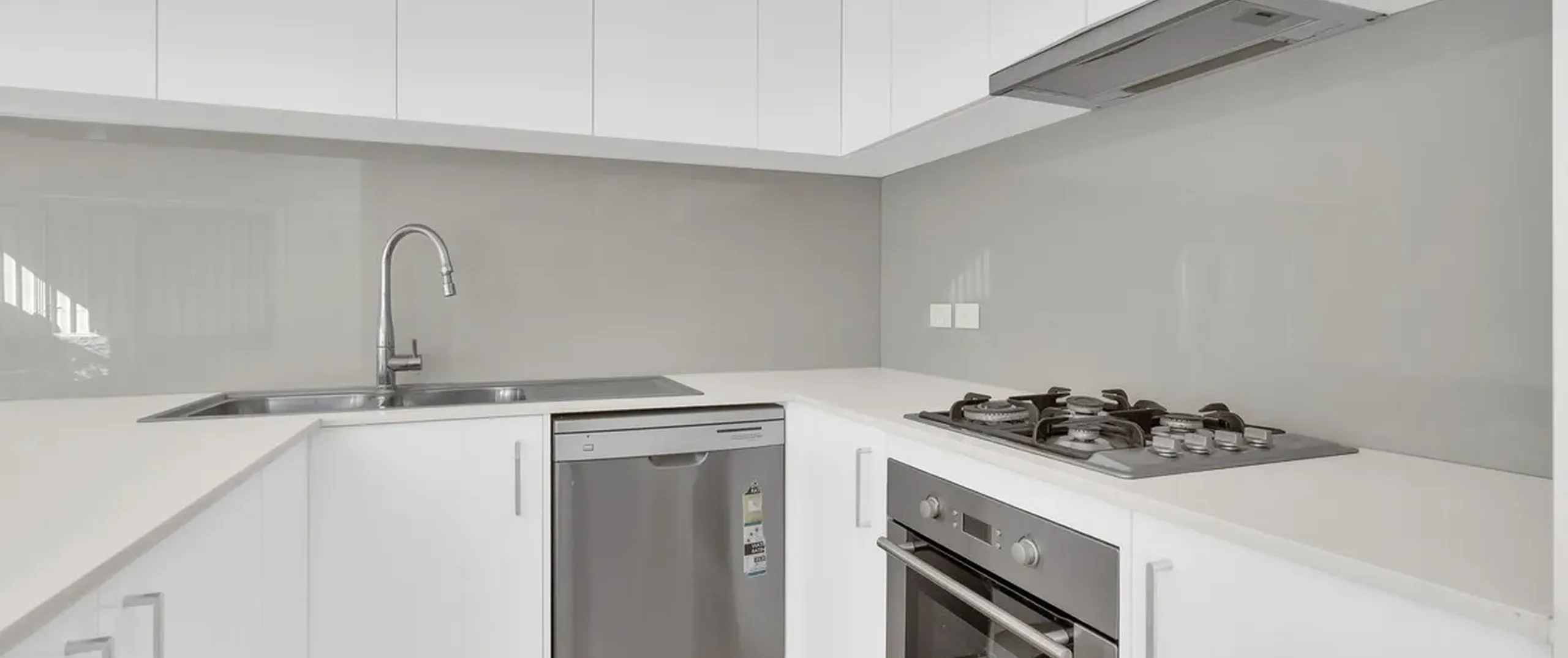 - Modern kitchen with gas cooktop. Electric under bench oven, dishwasher, ample cupboard and bench space