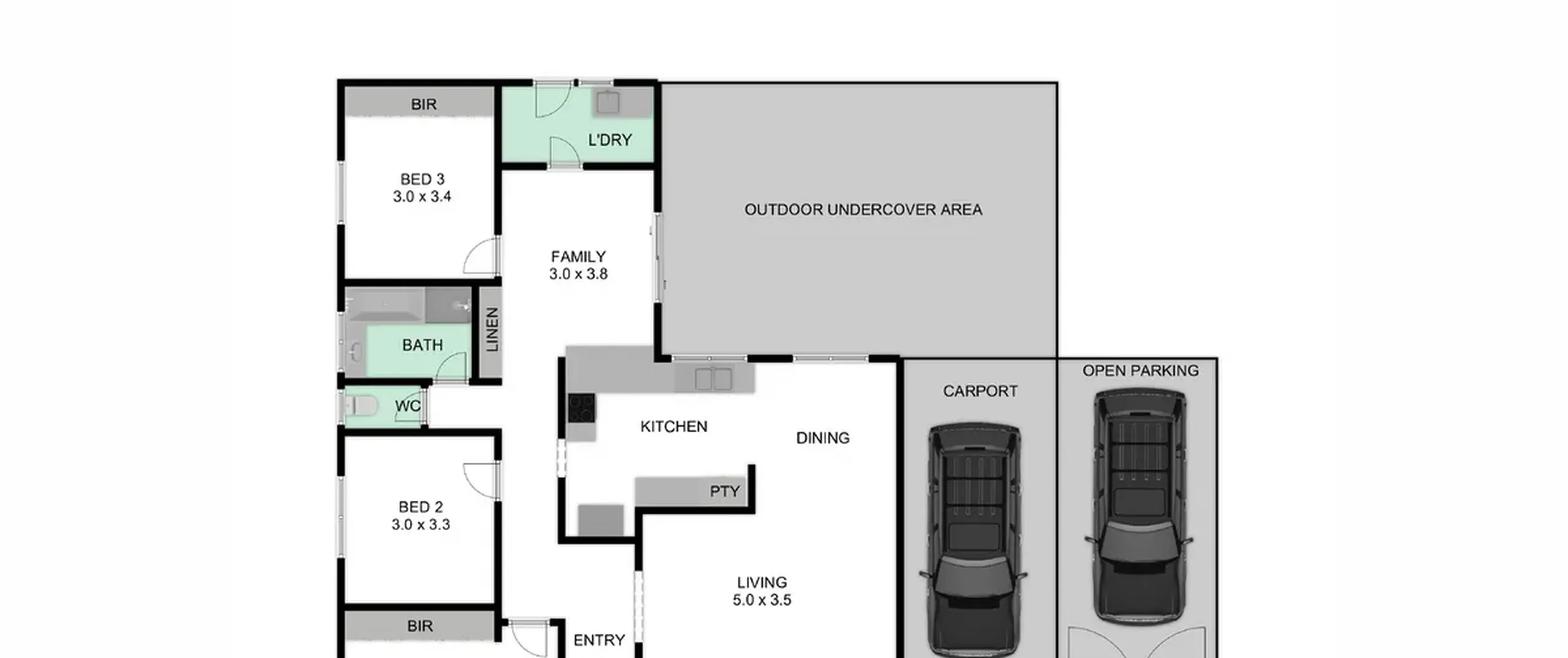 - Practical laundry with sink and bench space and external access