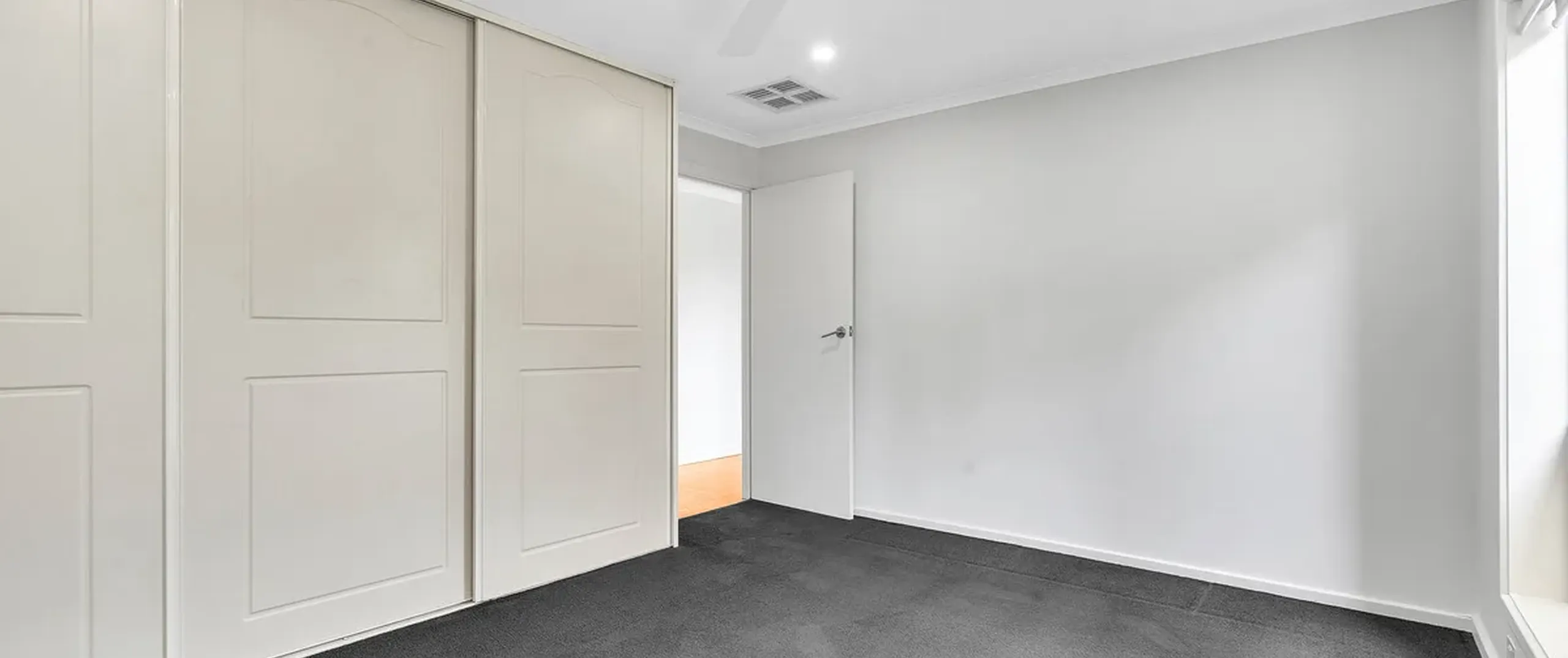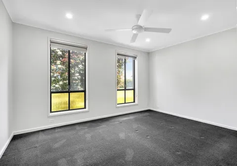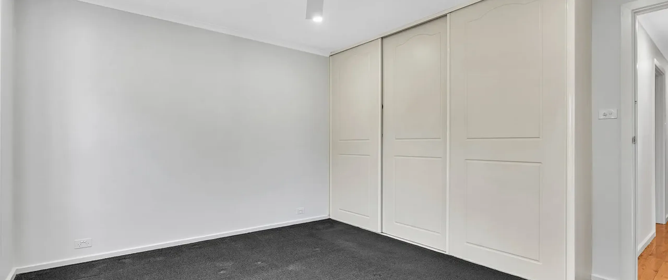 - Master bedroom complete with triple sliding door built-in robe, carpet and ceiling fan