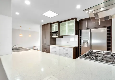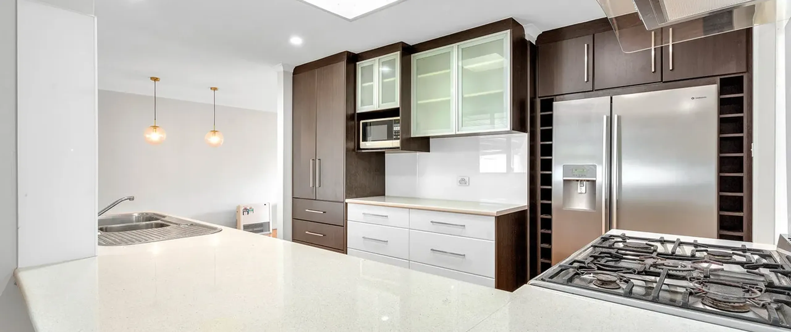 - Stunning kitchen with stainless steel appliances, oven and gas cooktop, dual sink, tiled splash back, ample cupboard and bench space complete with small breakfast bar