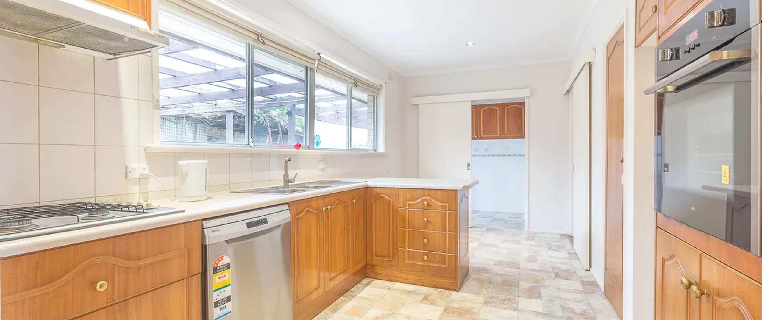 - Generous kitchen boasting gas cooktop, oven, dishwasher, double sink and ample bench and cupboard space
