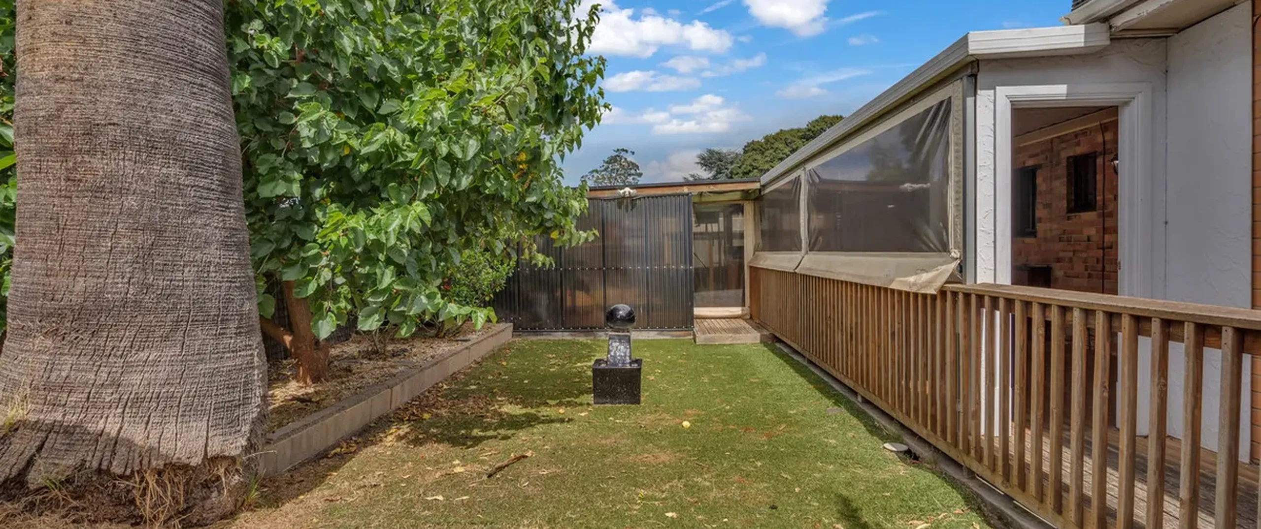 - Fenced front yard with spacious grass area