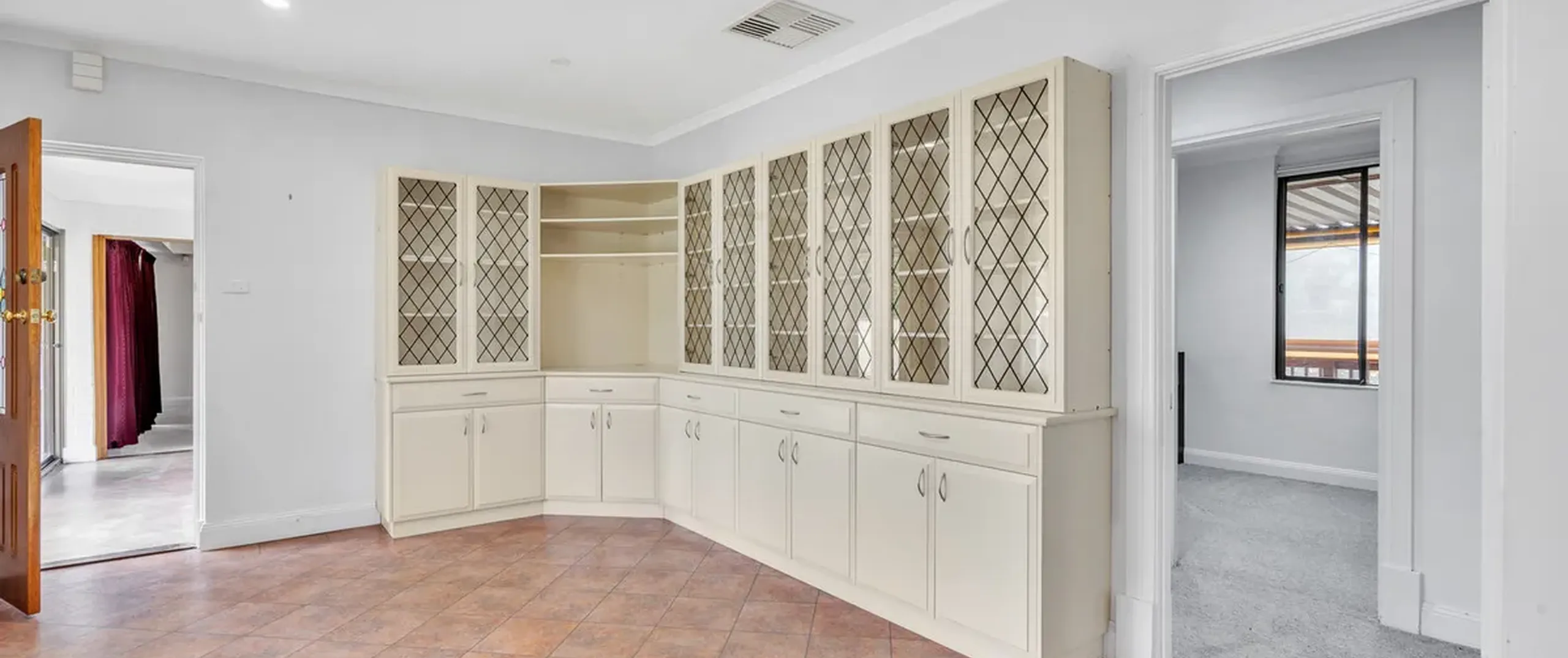 - Large separate dining area with built-in storge and display cabinet