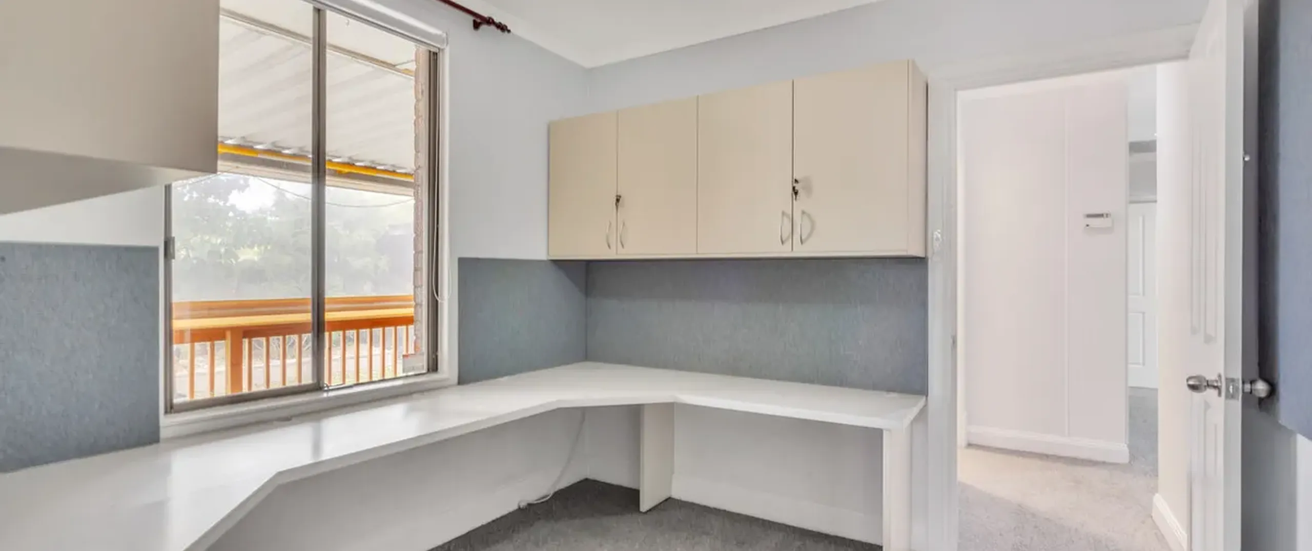 - Study with ceiling fan, built-in desk and cupboards