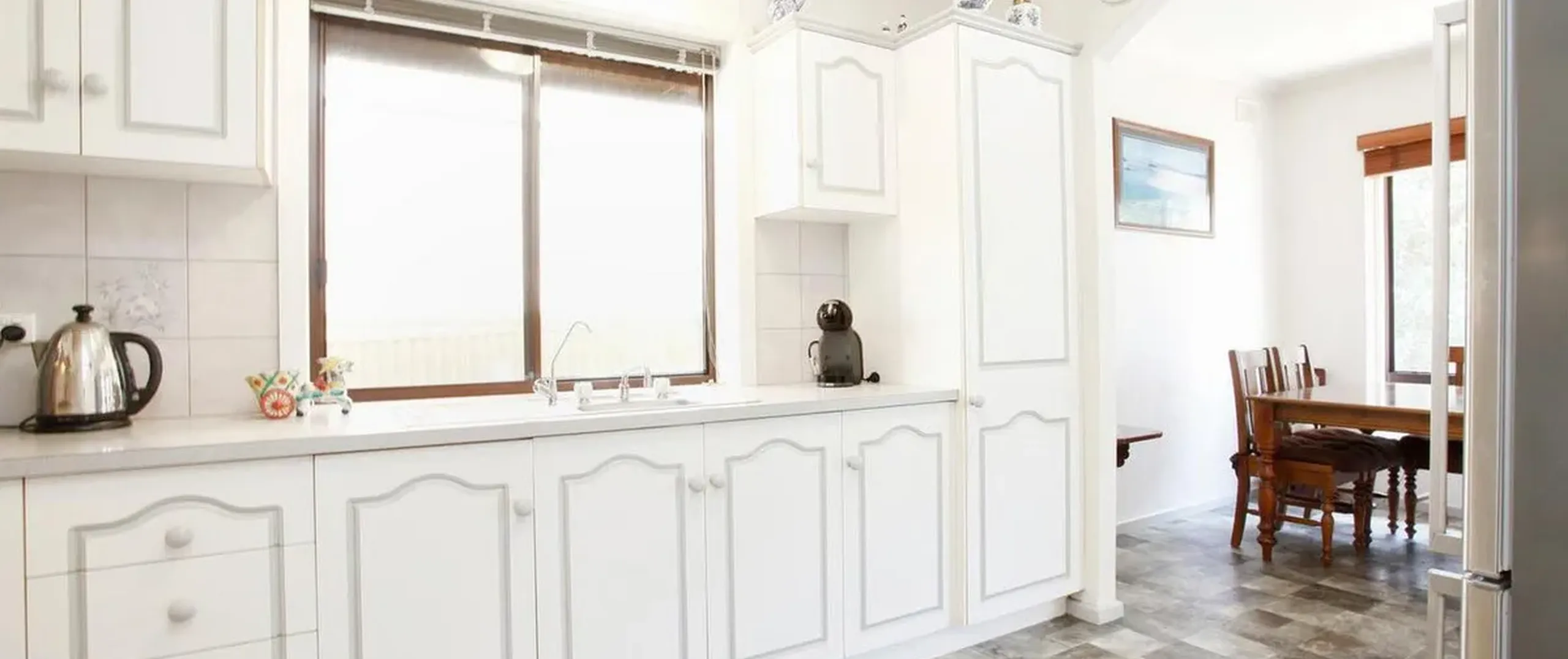 - Light-filled walk-through kitchen complete with gas cooktop, oven and with ample cupboard and bench space