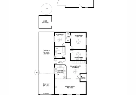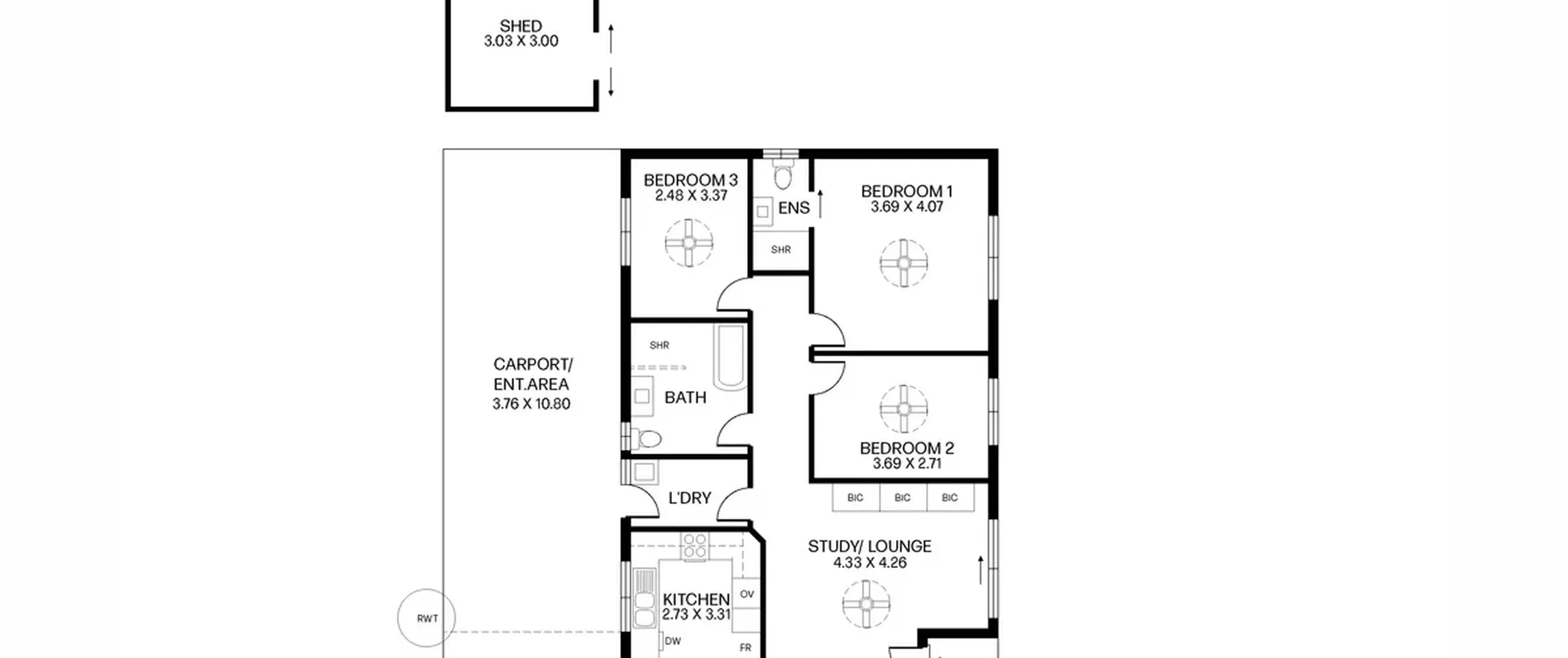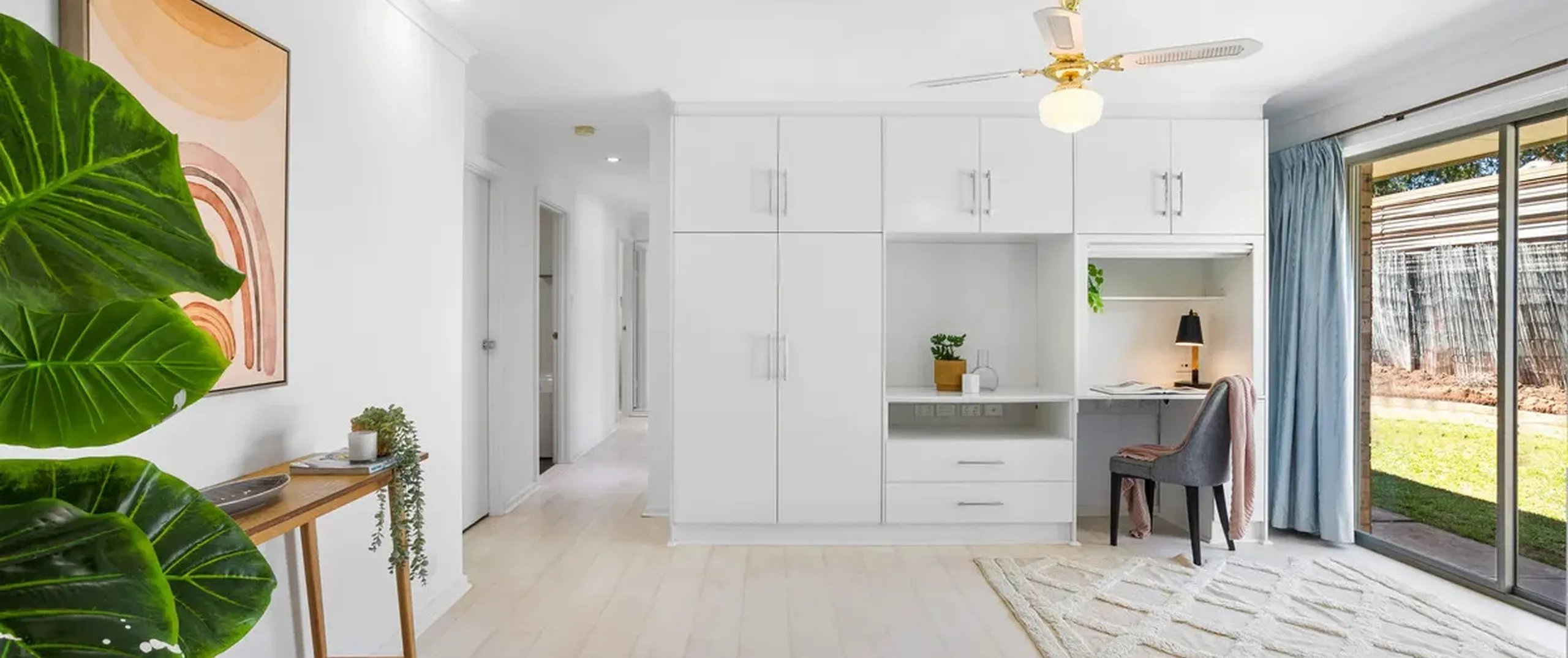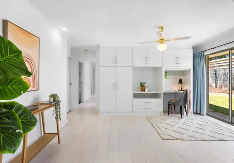 - Convenient separate study\lounge room with built-in cupboards and complete with ceiling fan