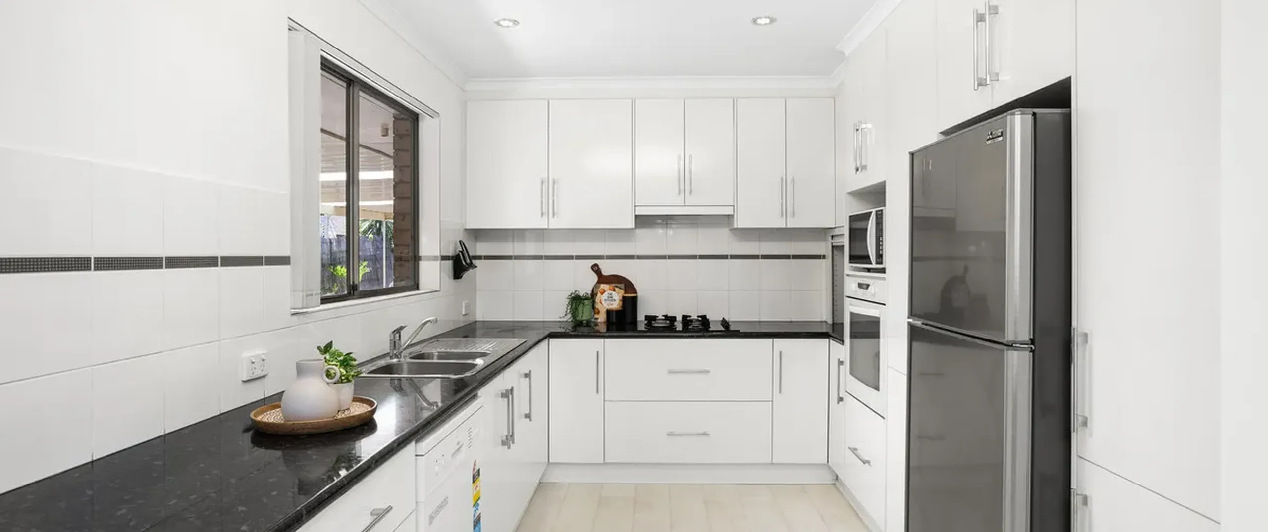 - Modern kitchen with pantry, ample storage space, dishwasher and gas cooktop