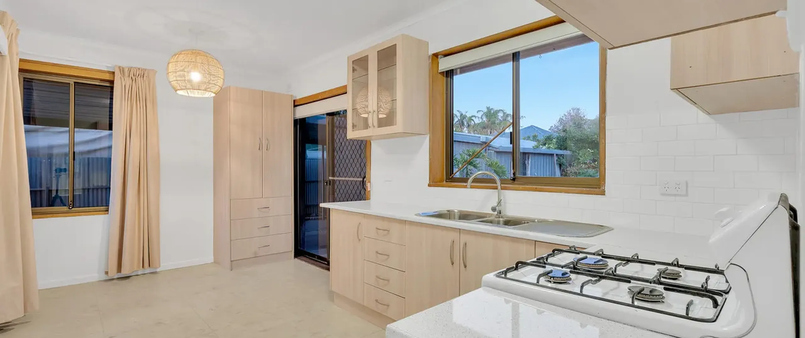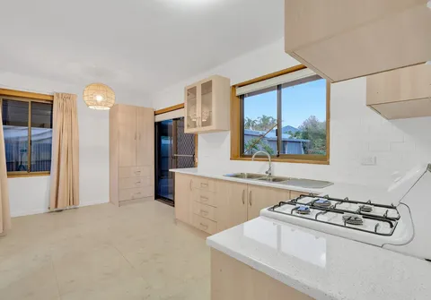 - Stunning renovated kitchen complete with gas cooktop, oven, dual sink, and ample cupboard and bench space