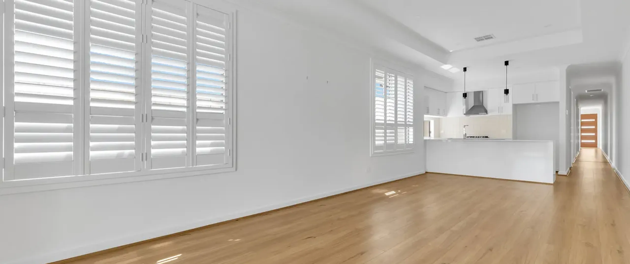 - Bright family and dining room adjacent kitchen recessed ceiling, plantation shutters, downlights and easy access to the backyard
