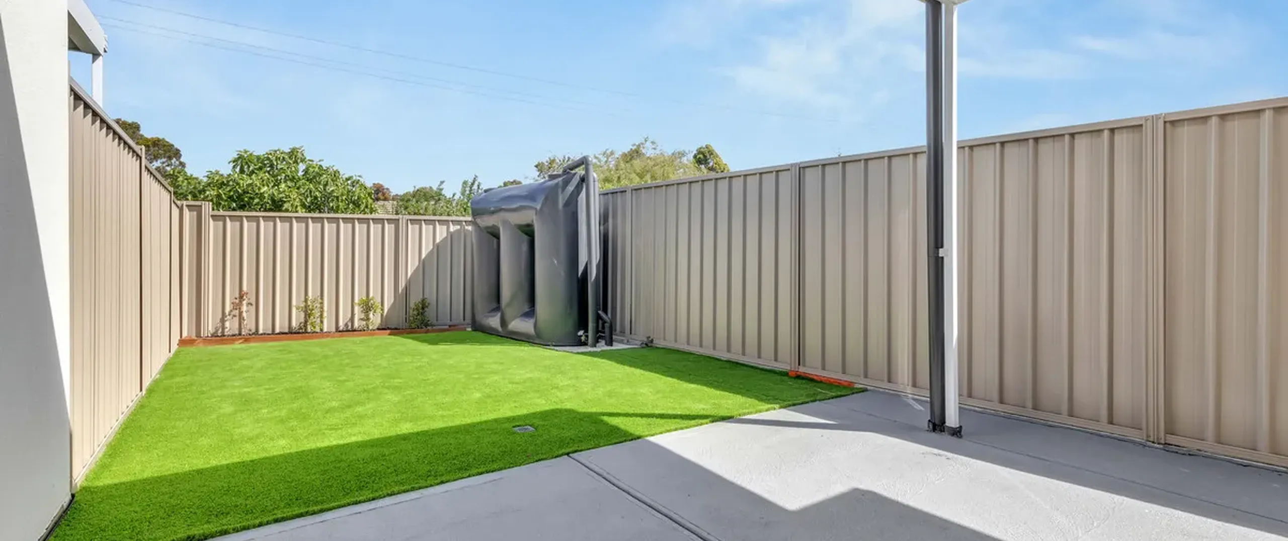- Low maintenance yard with artificial lawn and covered entertainment area