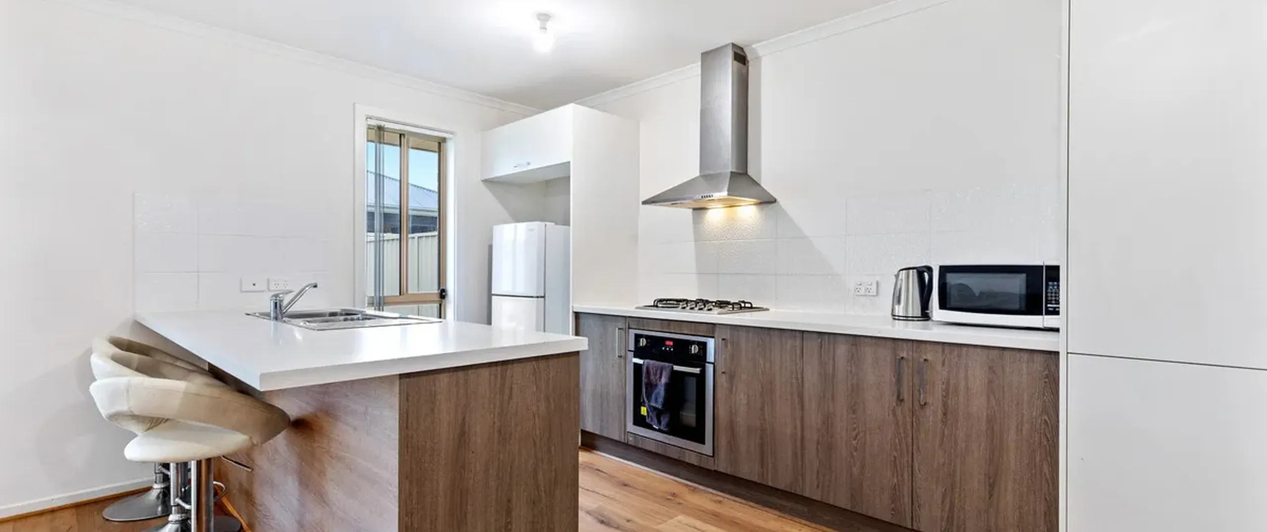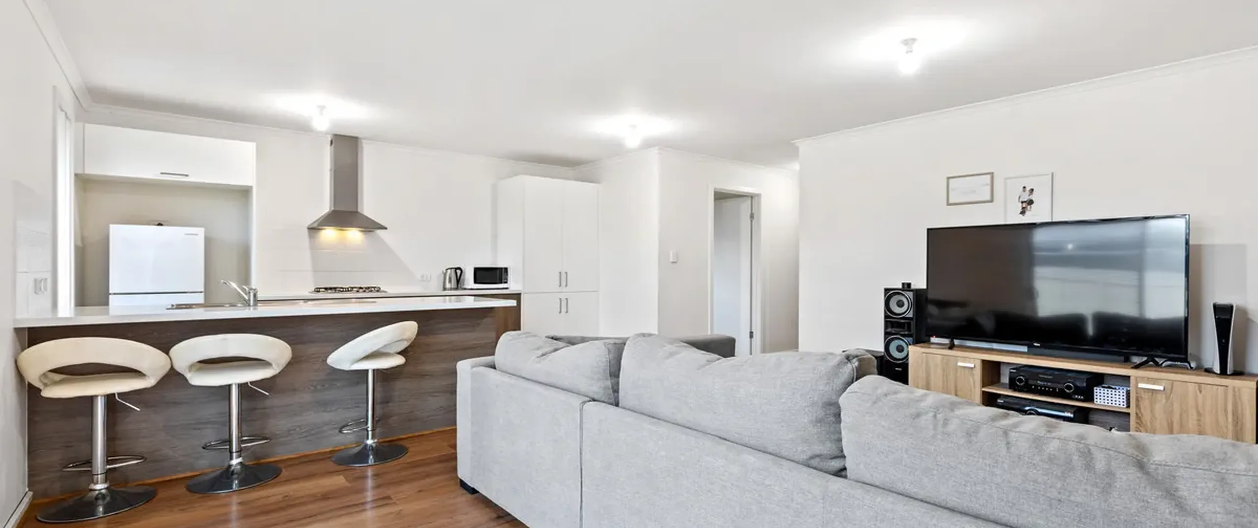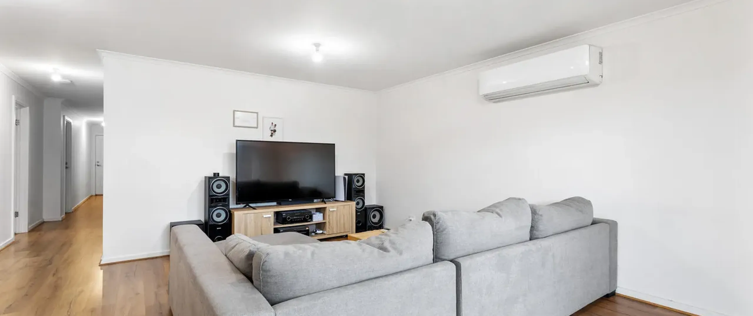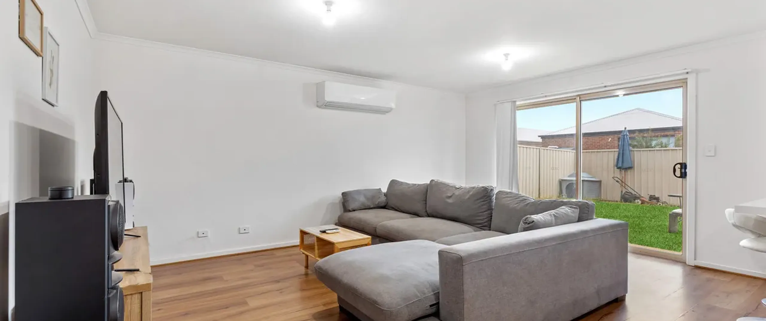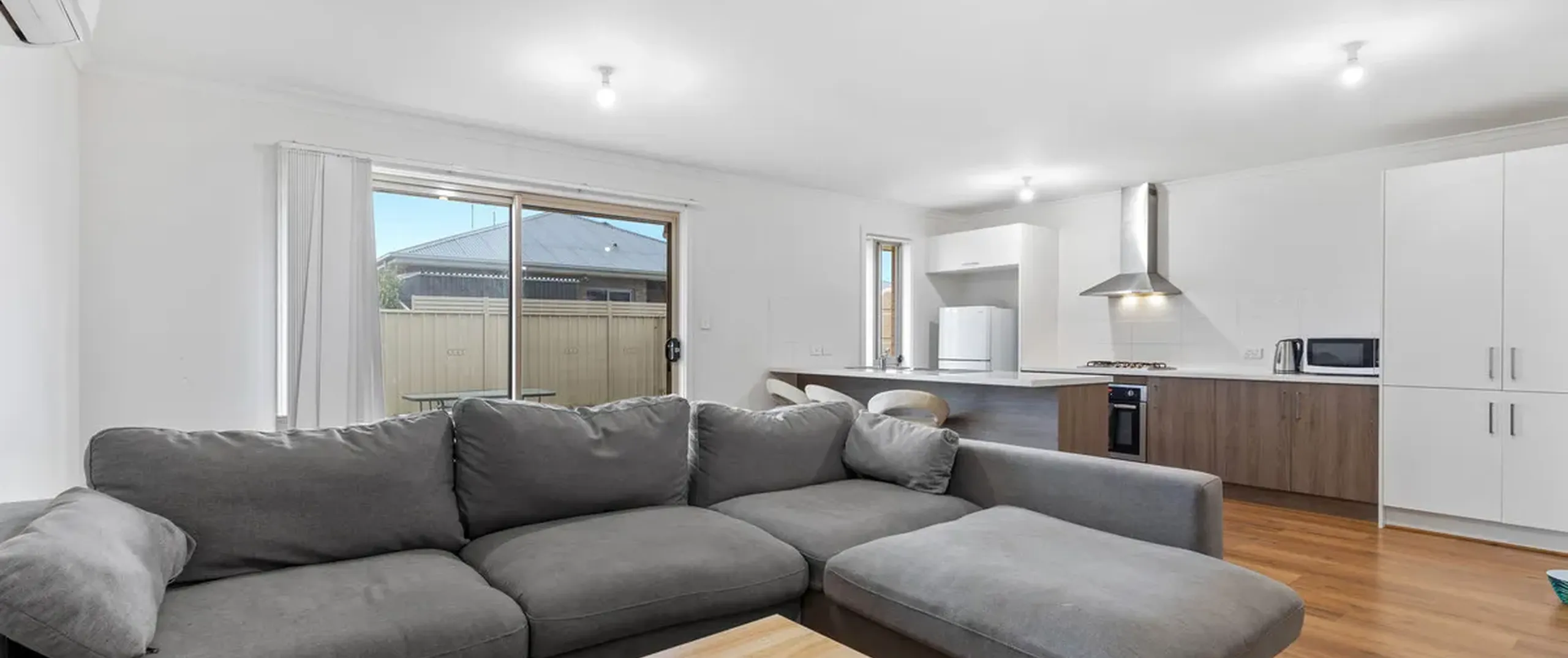 - Open plan living/dining and kitchen area with split-system reverse cycle air conditioner
