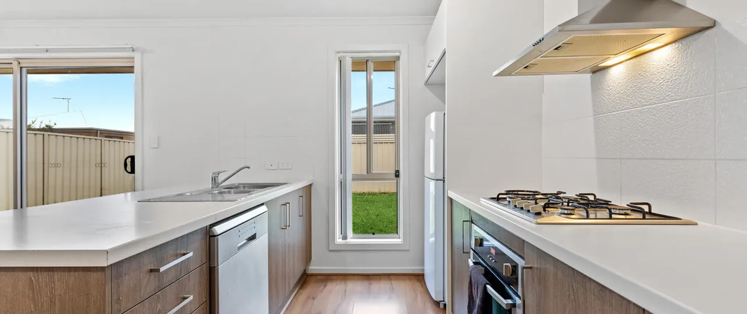 - Modern kitchen with stainless steel appliances including dishwasher, gas cooktop, pantry, breakfast bar and ample cupboard space