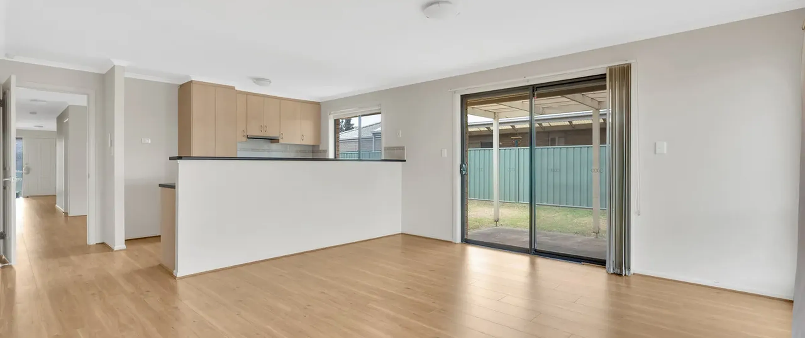 - Open plan kitchen, dining & living area