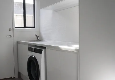 - Sleek on-trend kitchen with stainless steel dishwasher, electric oven and gas cooktop, ample cupboard and bench space complete