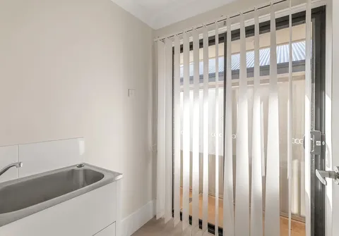 - Light-filled living area with split system and glass sliding doors opening to rear yard