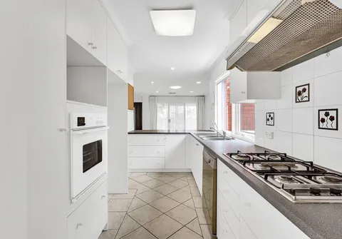 - The central kitchen is well equipped with ample cupboard and bench space, gas cook top, electric oven and dishwasher