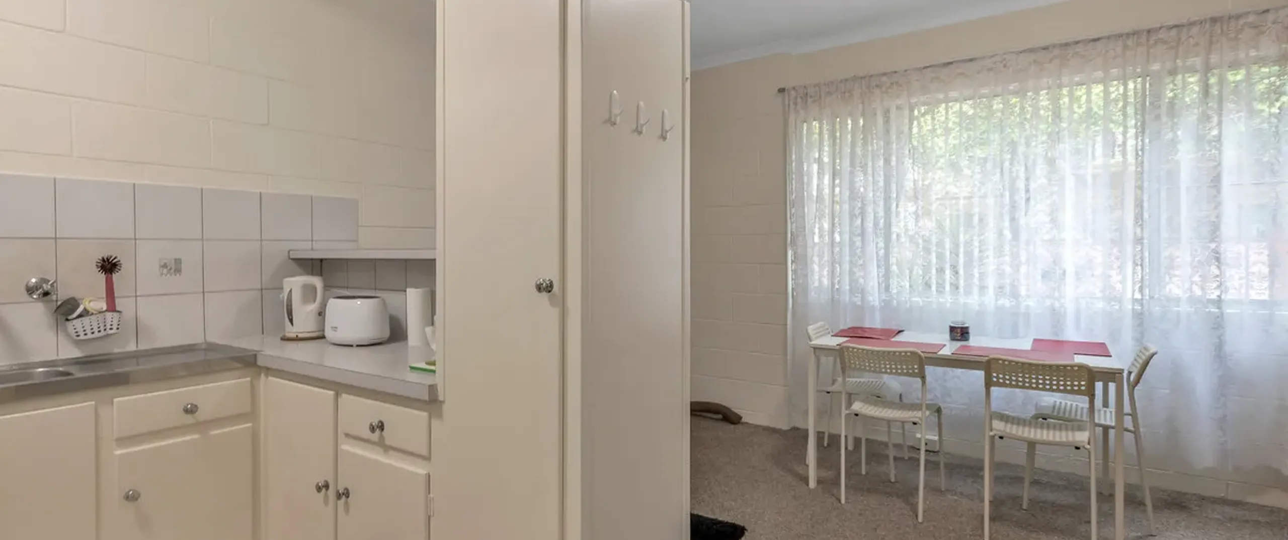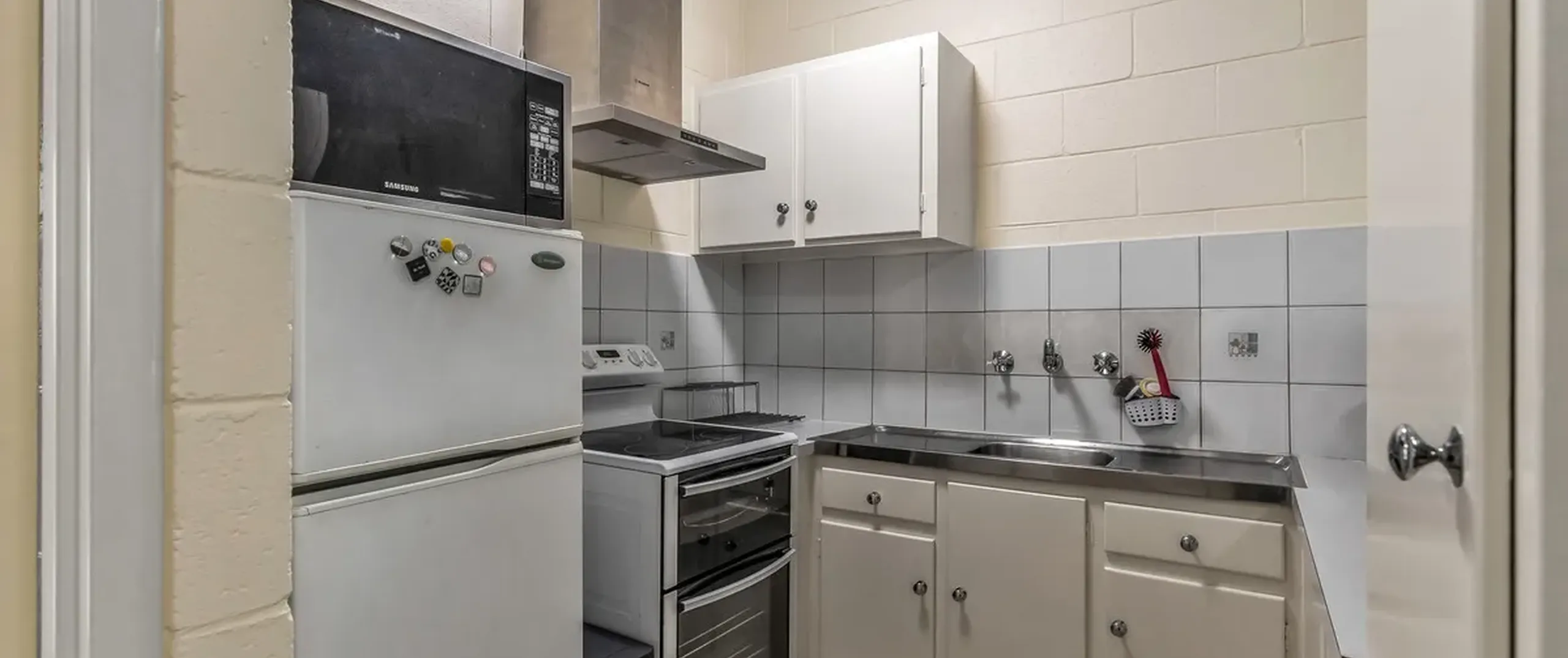 - Neat and tidy kitchen complete with fridge, microwave and electric cooking