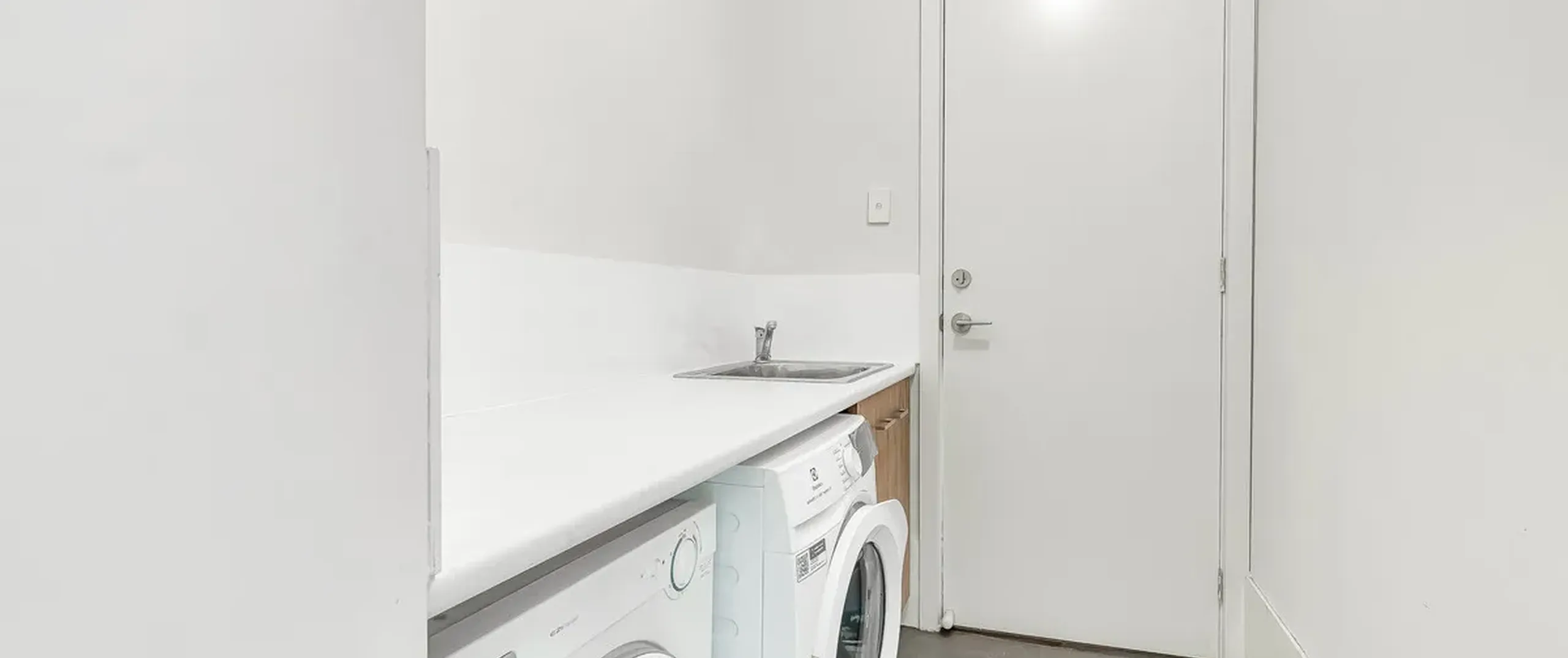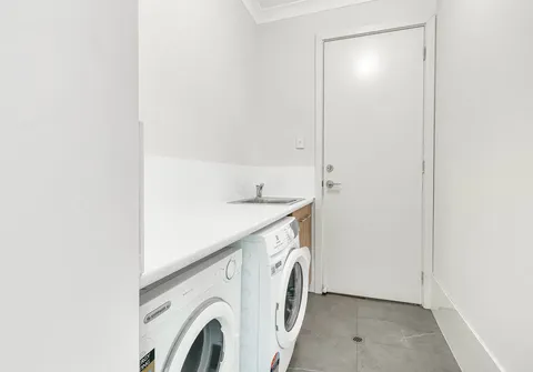 - Practical Separate laundry with storage under the sink