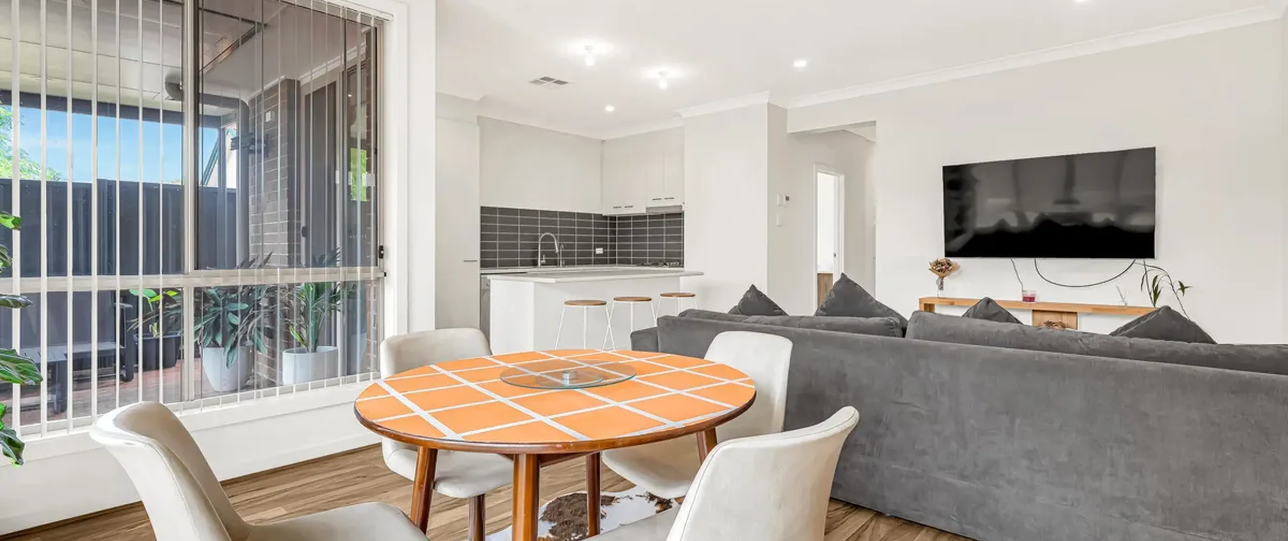 - Light filled open plan living, dining and kitchen with sliding doors leading to patio