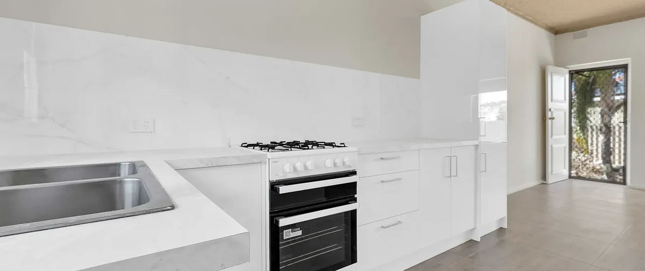 - Newly renovated kitchen with gas cooktop and ample storage space