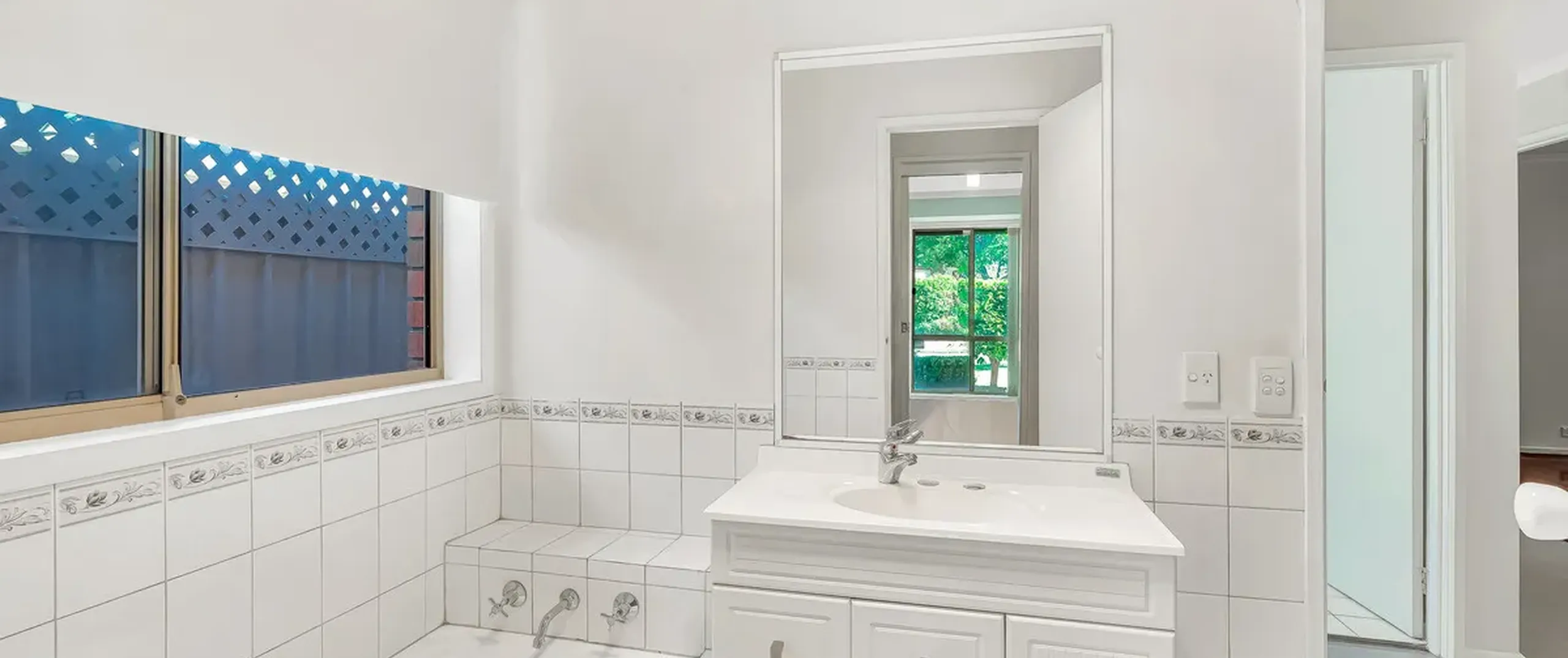 - Practical 2-way bathroom with step-in shower and separate bathtub