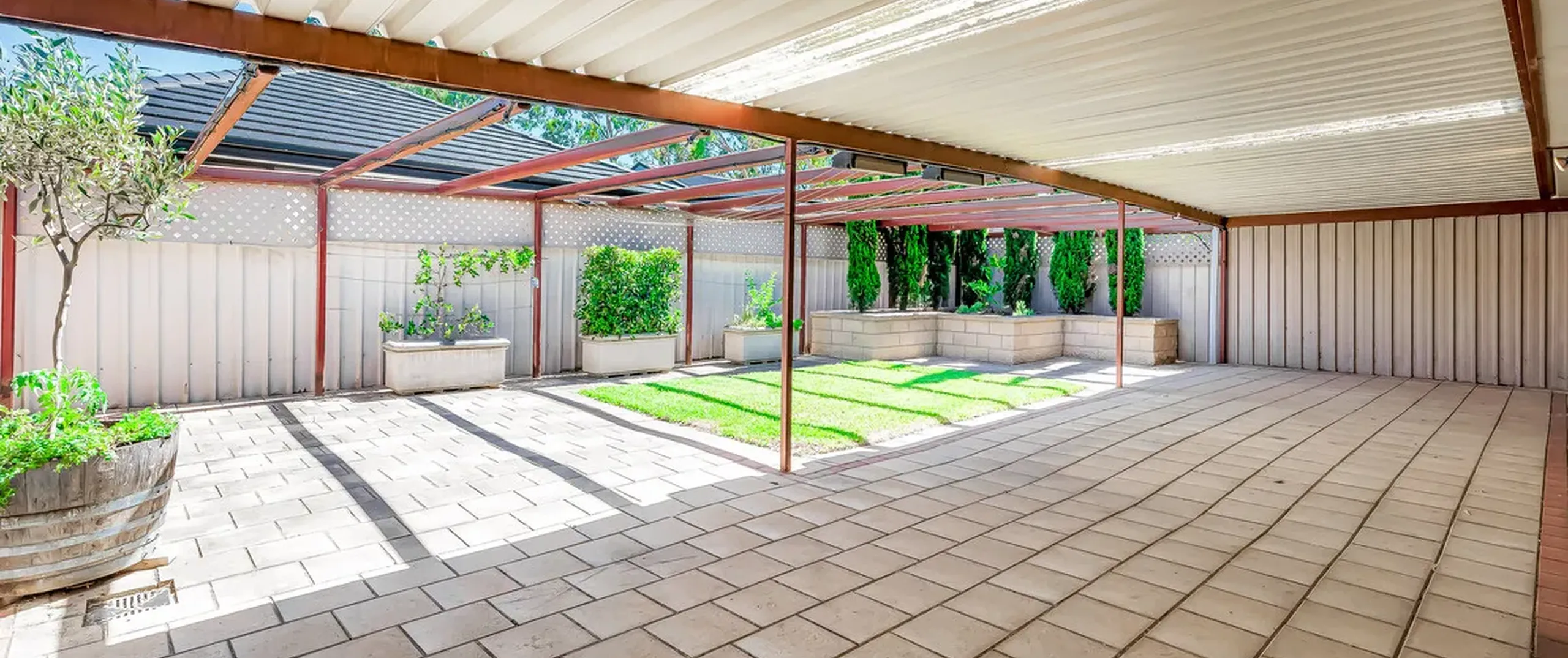 - Large paved undercover entertaining area at the rear with manicured lawns and garden