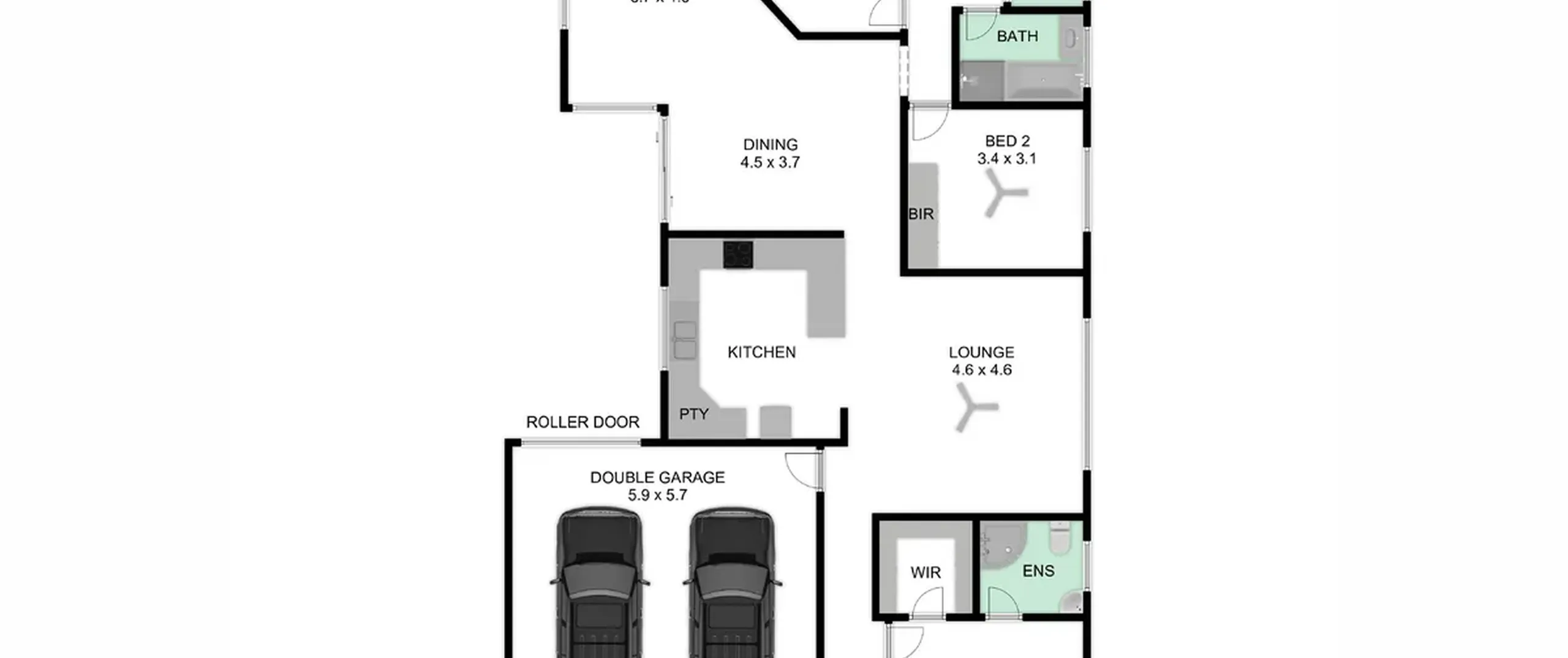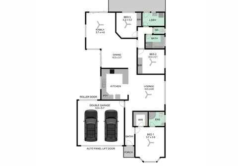 - Double car garage with automatic panel lift door, built-in cupboards and extra roller door to the rear and there is also direct access inside the house