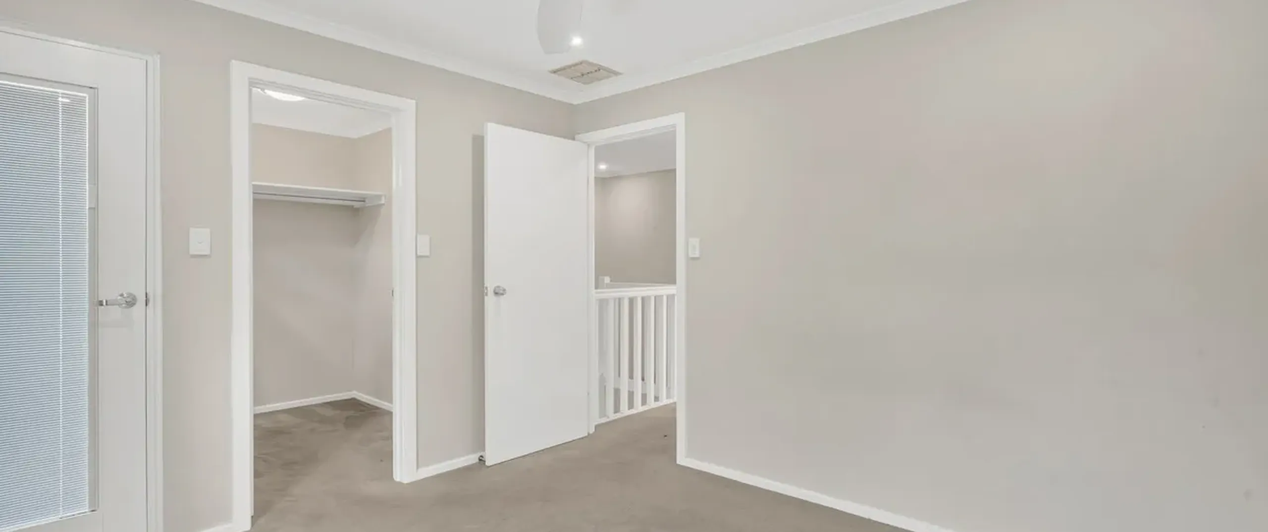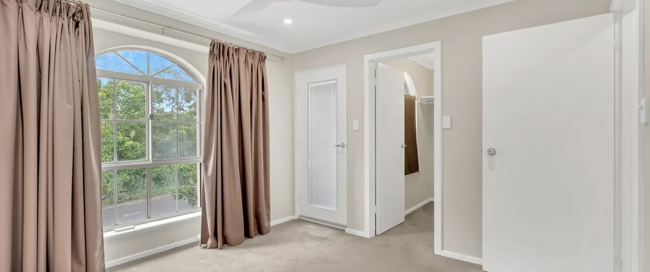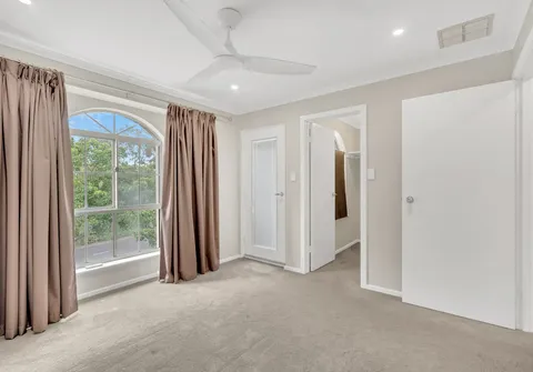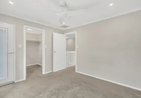 - Bright and large master bedroom with ceiling fan, carpet, walk-in robe and access to private balcony