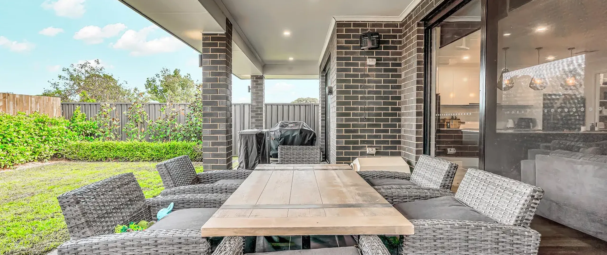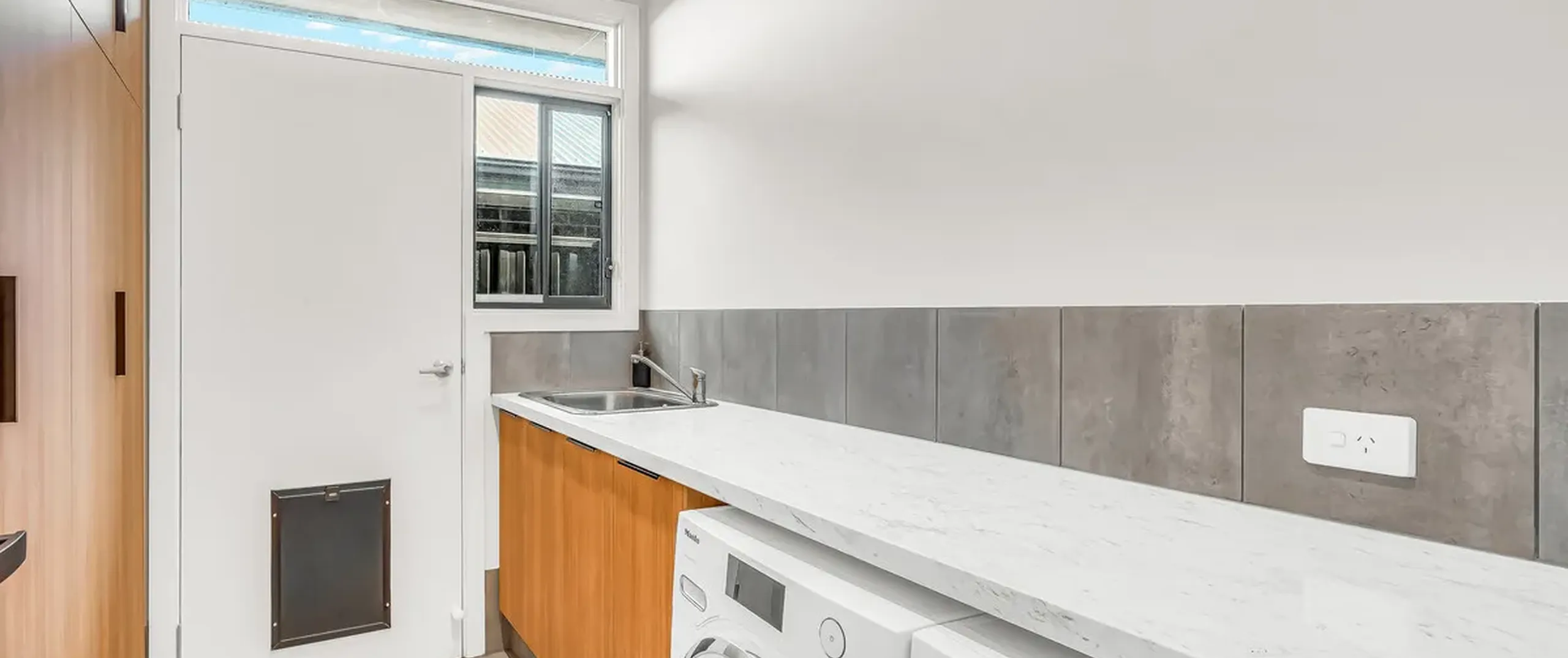 - Laundry with built-in cupboard space and external access