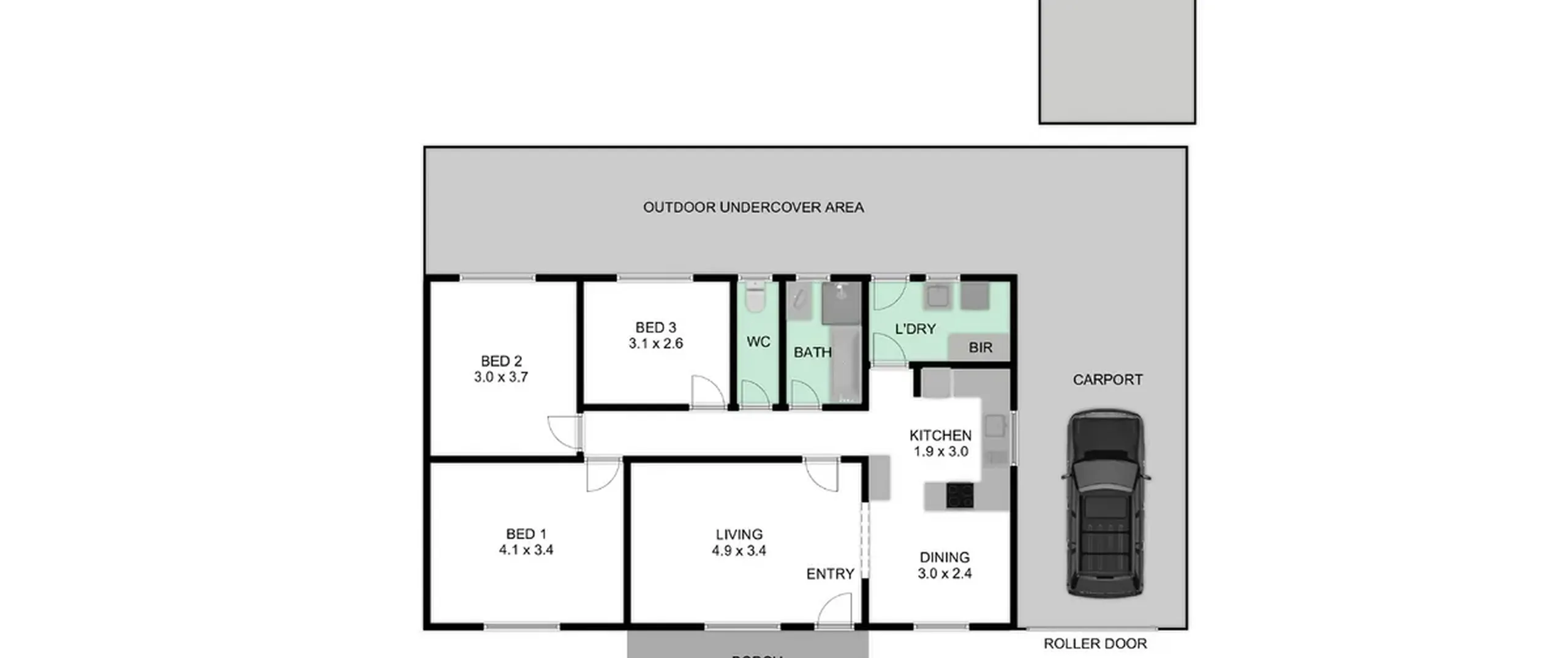 EXCLUSIONS: 2x small garden sheds and far right hand driveway and carport (for landlord use)