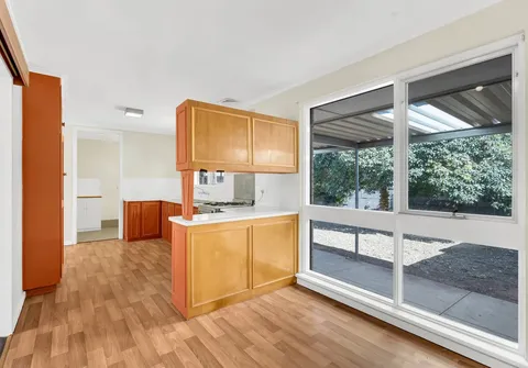 - Neat kitchen with gas cooktop adjoining dining area