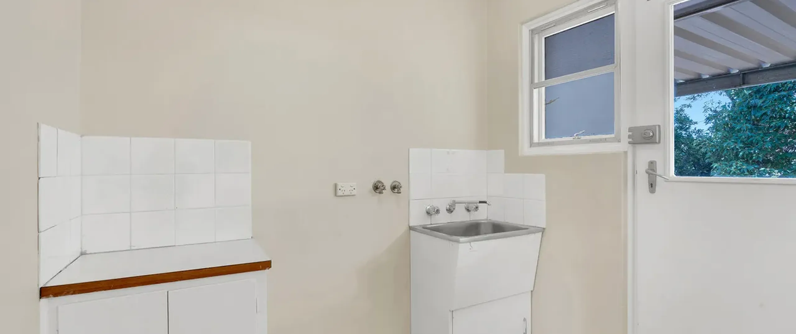 - Laundry with storage and external access