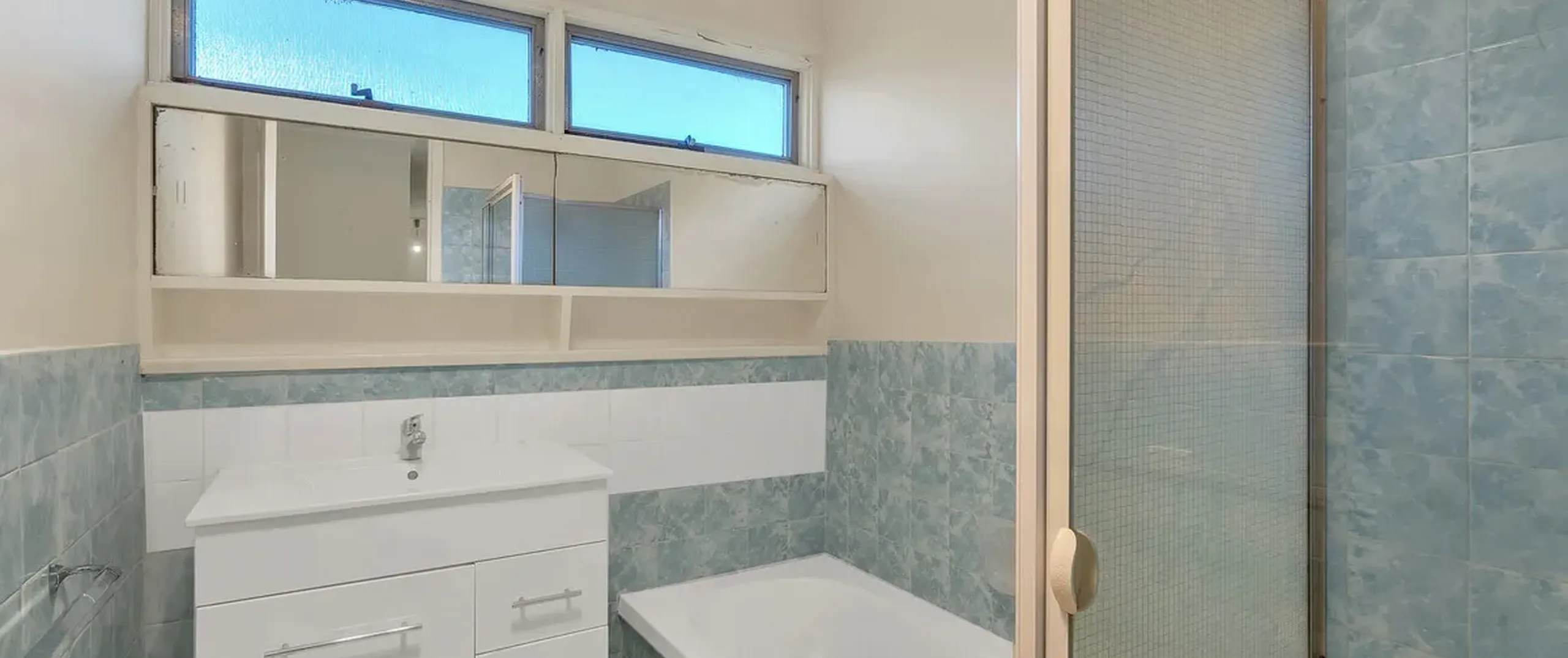 - Functional bathroom with separate toilet, shower/bath and vanity